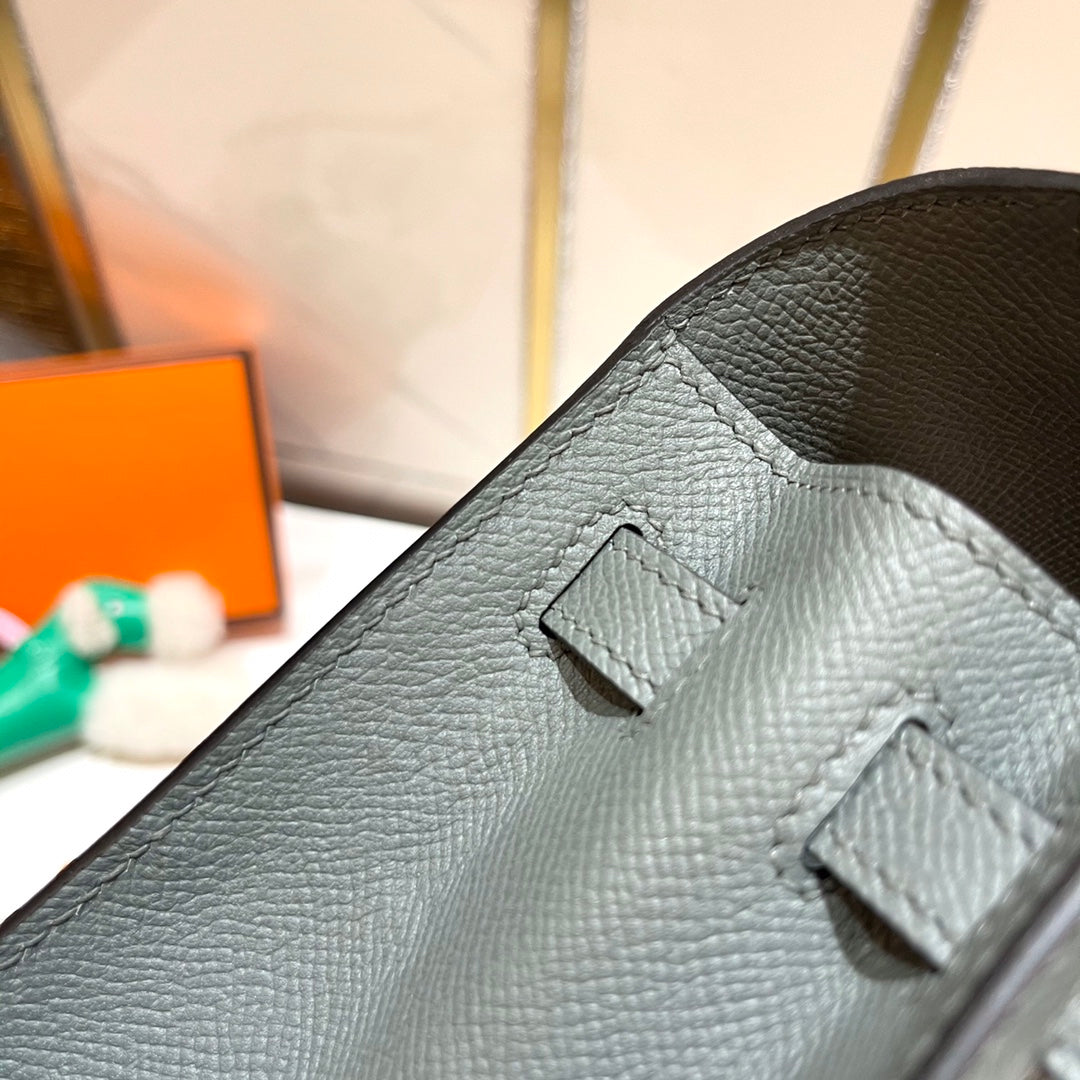HM KELLY 25CM GRIS MOUETTE EPSOM LEATHER SILVER HARDWARE