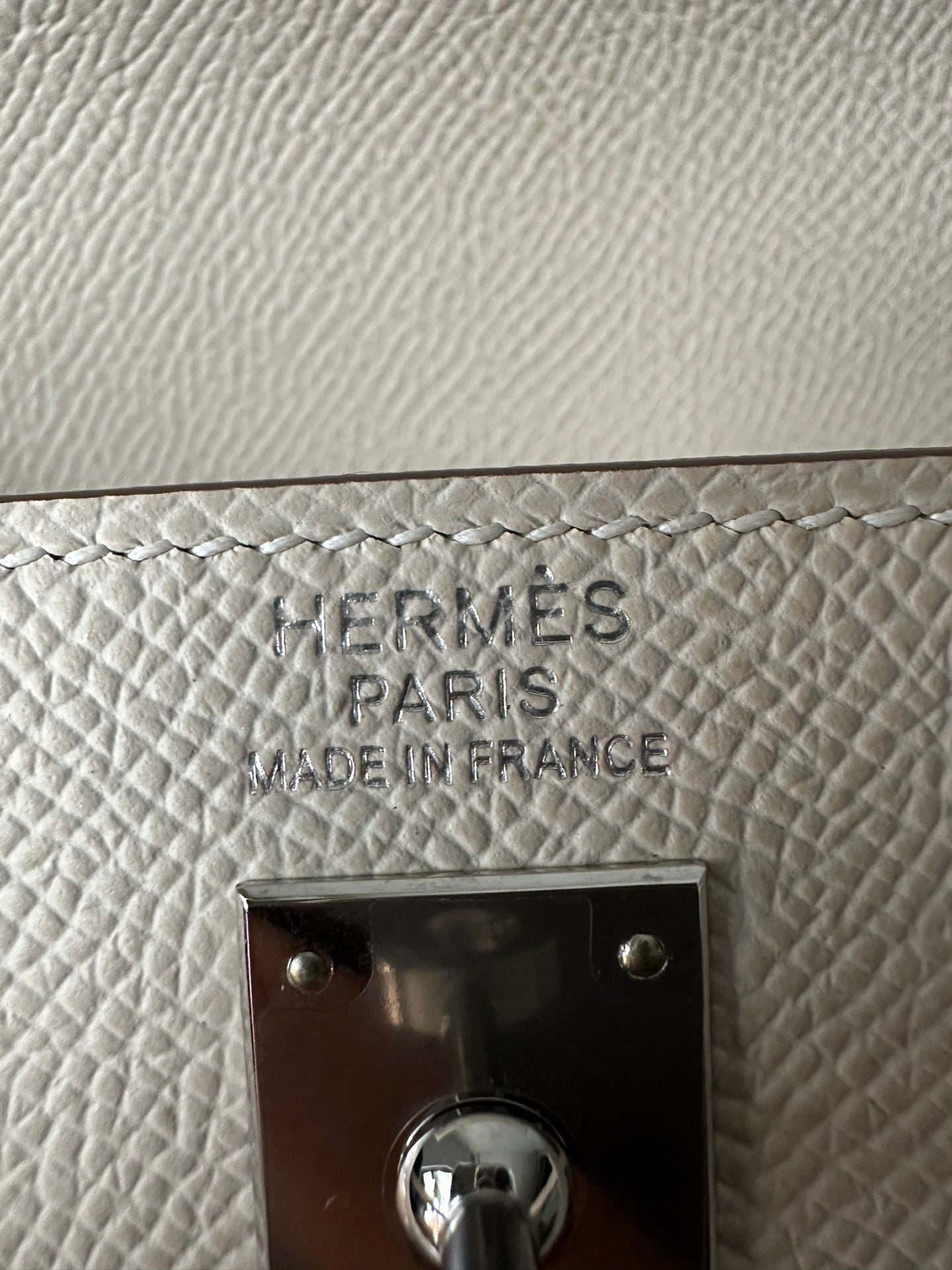 HM KELLY 25CM WHITE EPSOM SILVER HARDWARE