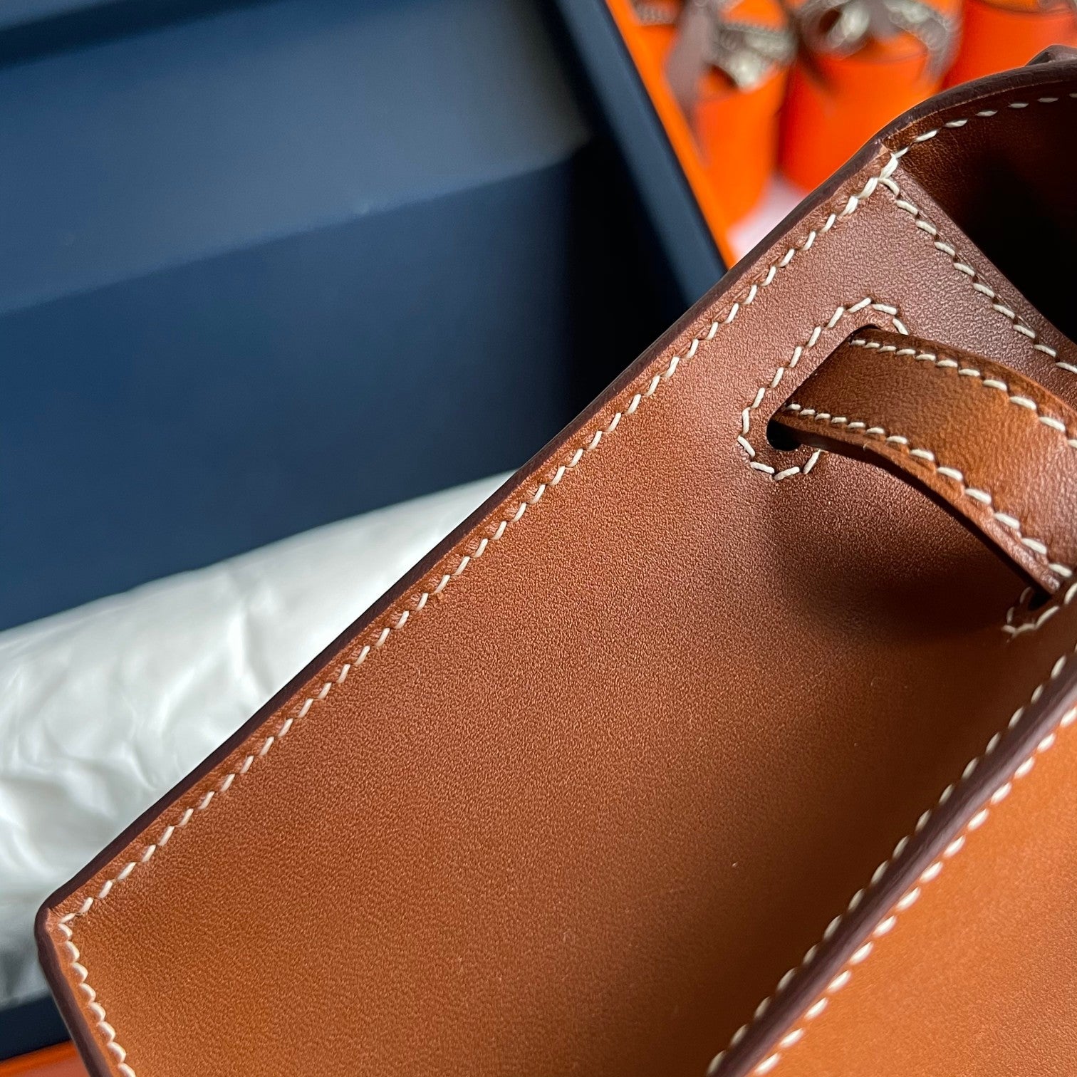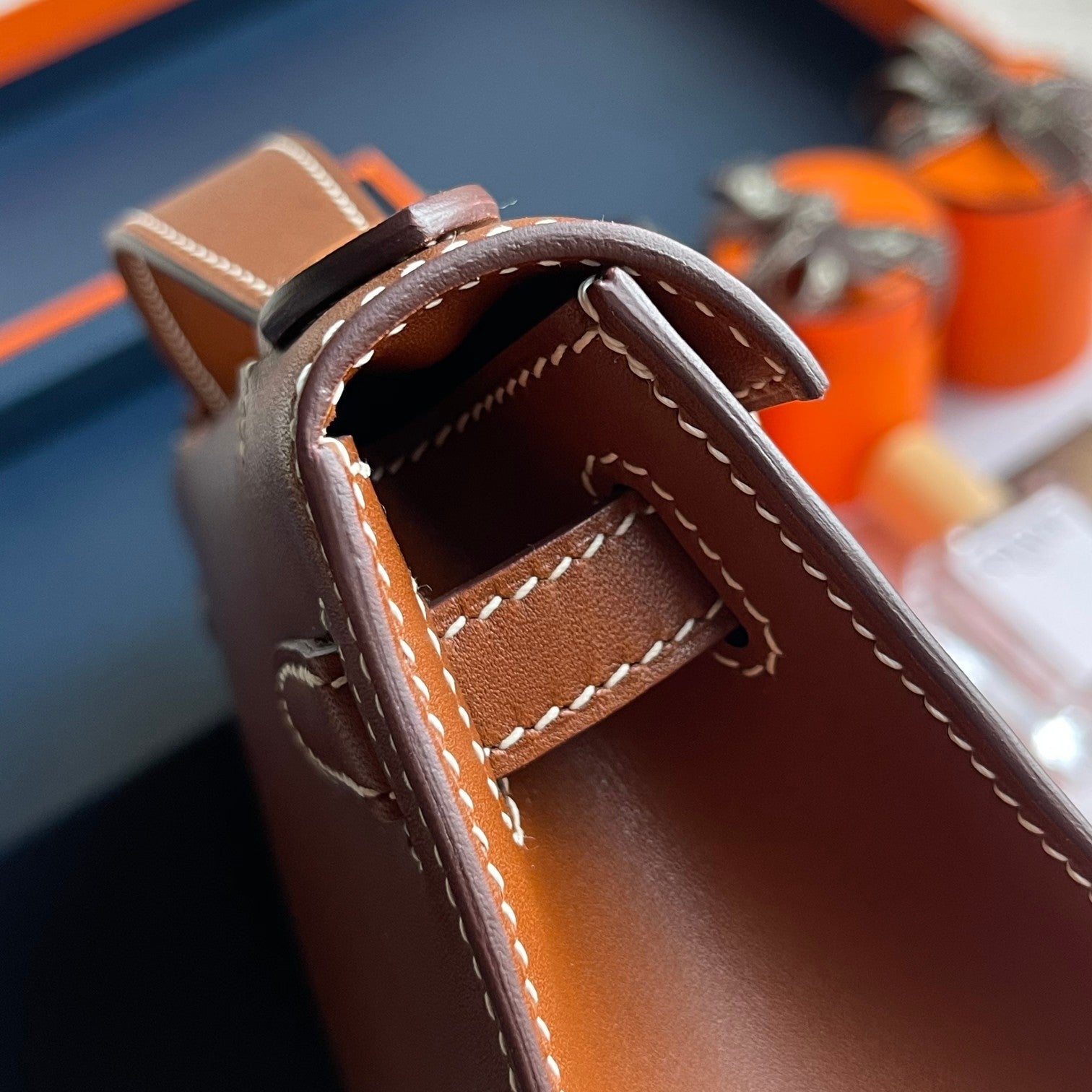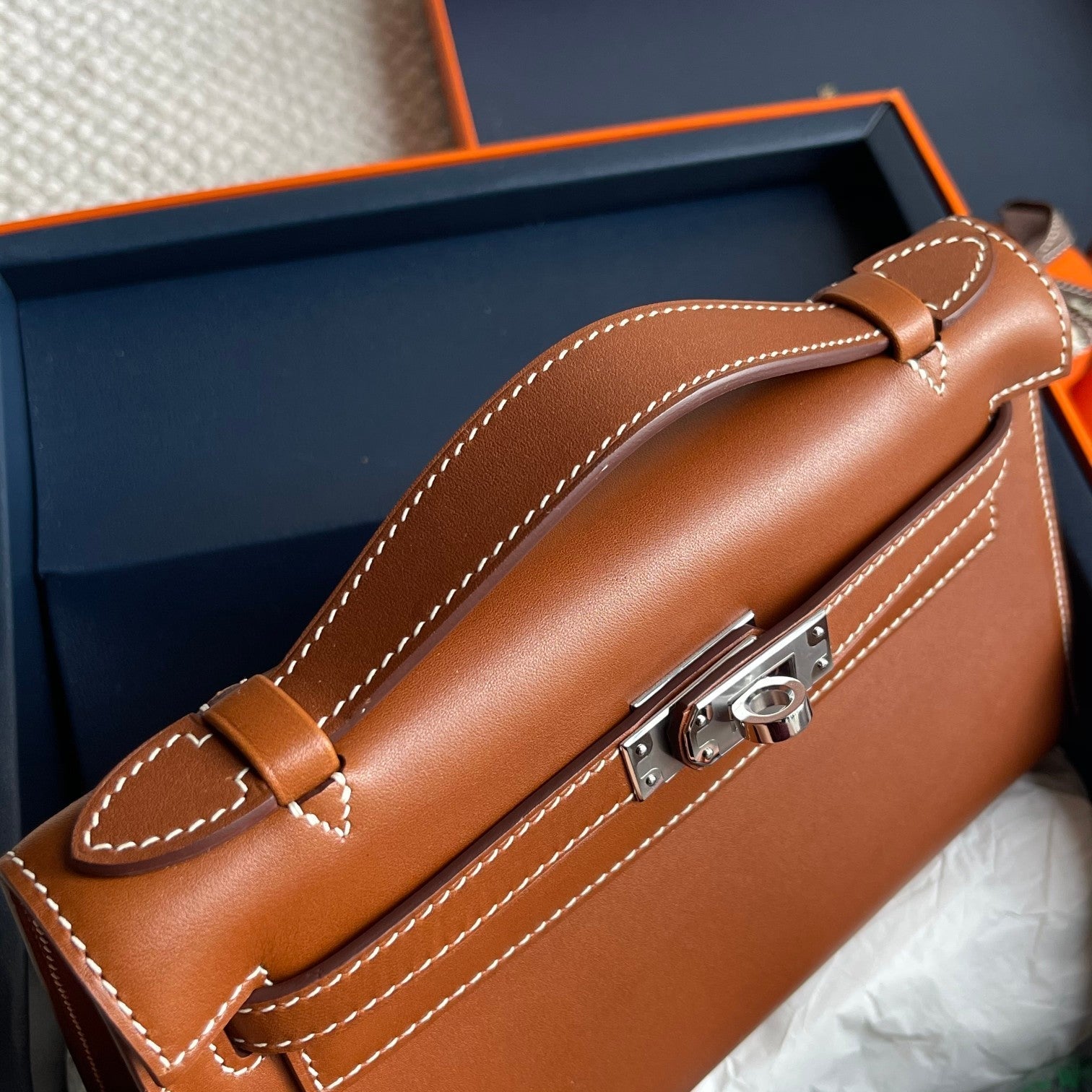 HM Kelly Pochette 22cm Dark Brown Swift Silver Hardware