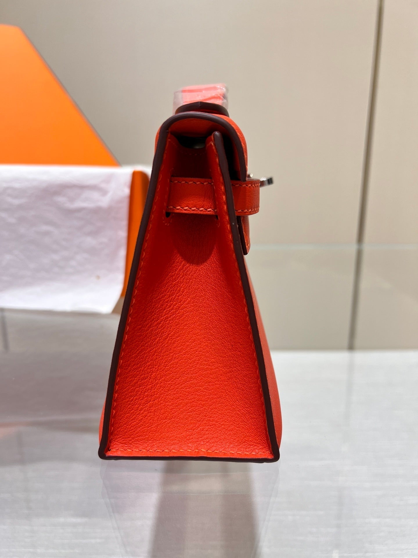 HM KELLY POCHETTE 22CM RED SWIFT SILVER HARDWARE