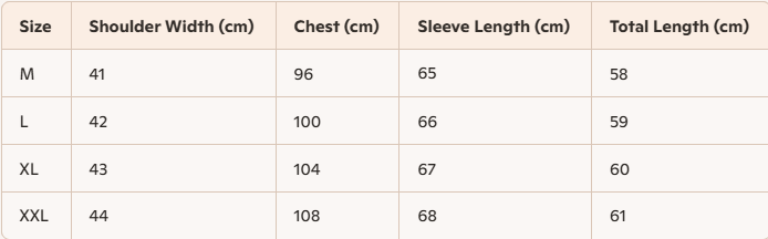 - Size : M , L, XL, XXL