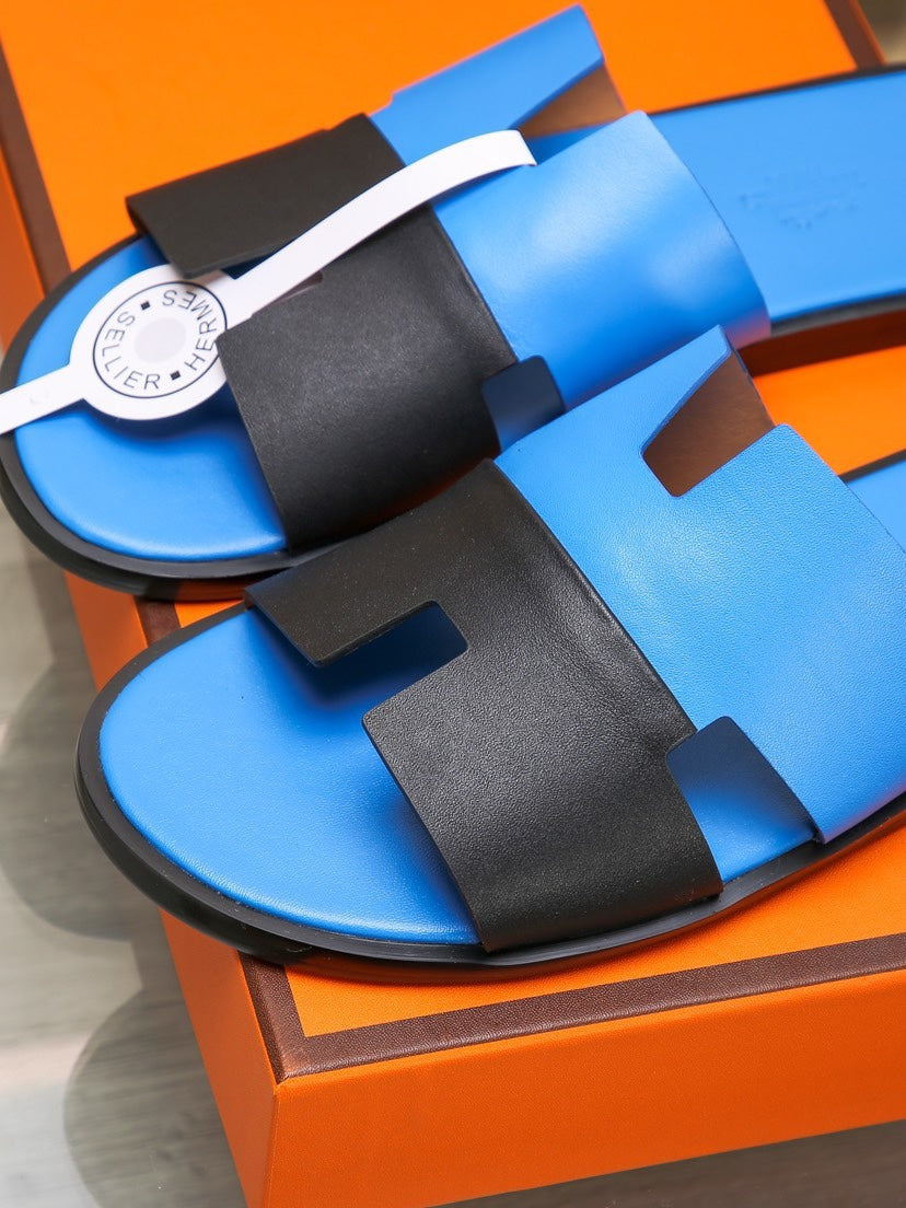 HM Men's Izmir Slide Black Blue Cowhide 685819