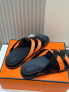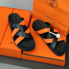 HM Men's Kazimir Slide Black Orange Calfskin 562774
