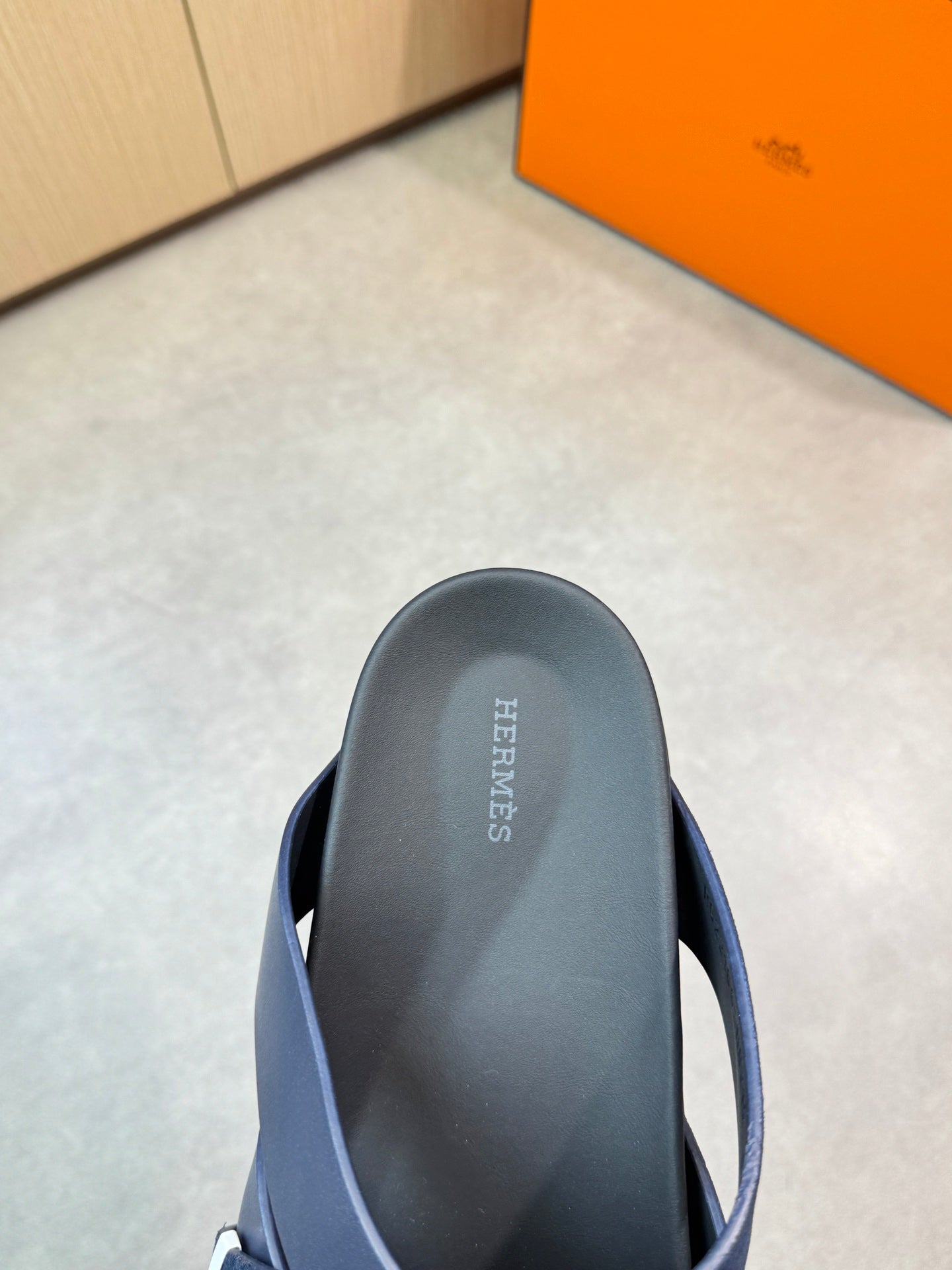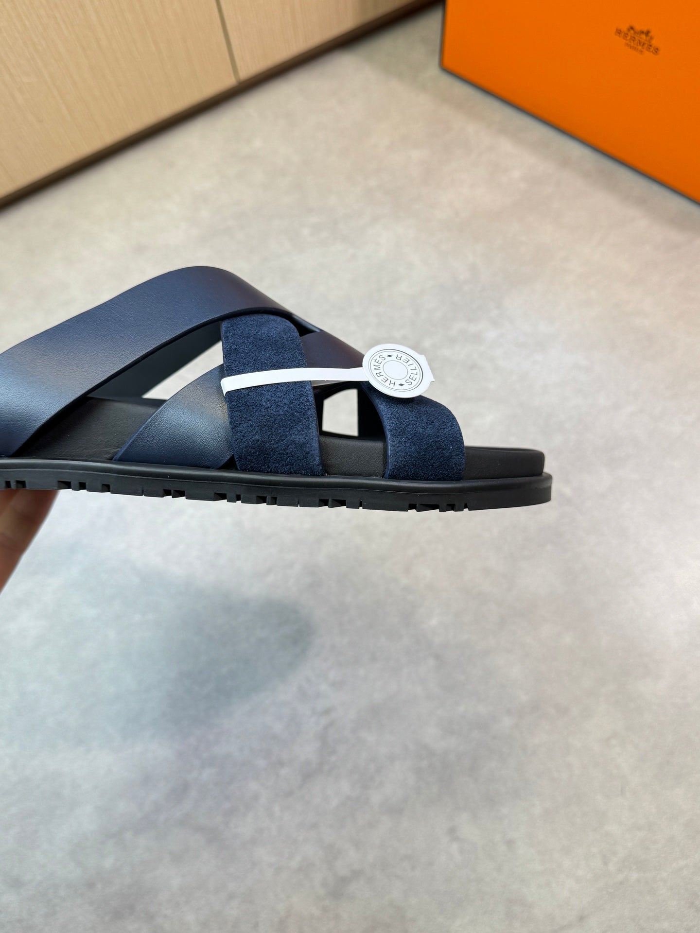 HM Men's Kazimir Slide Navy Blue Calfskin Suede 603171