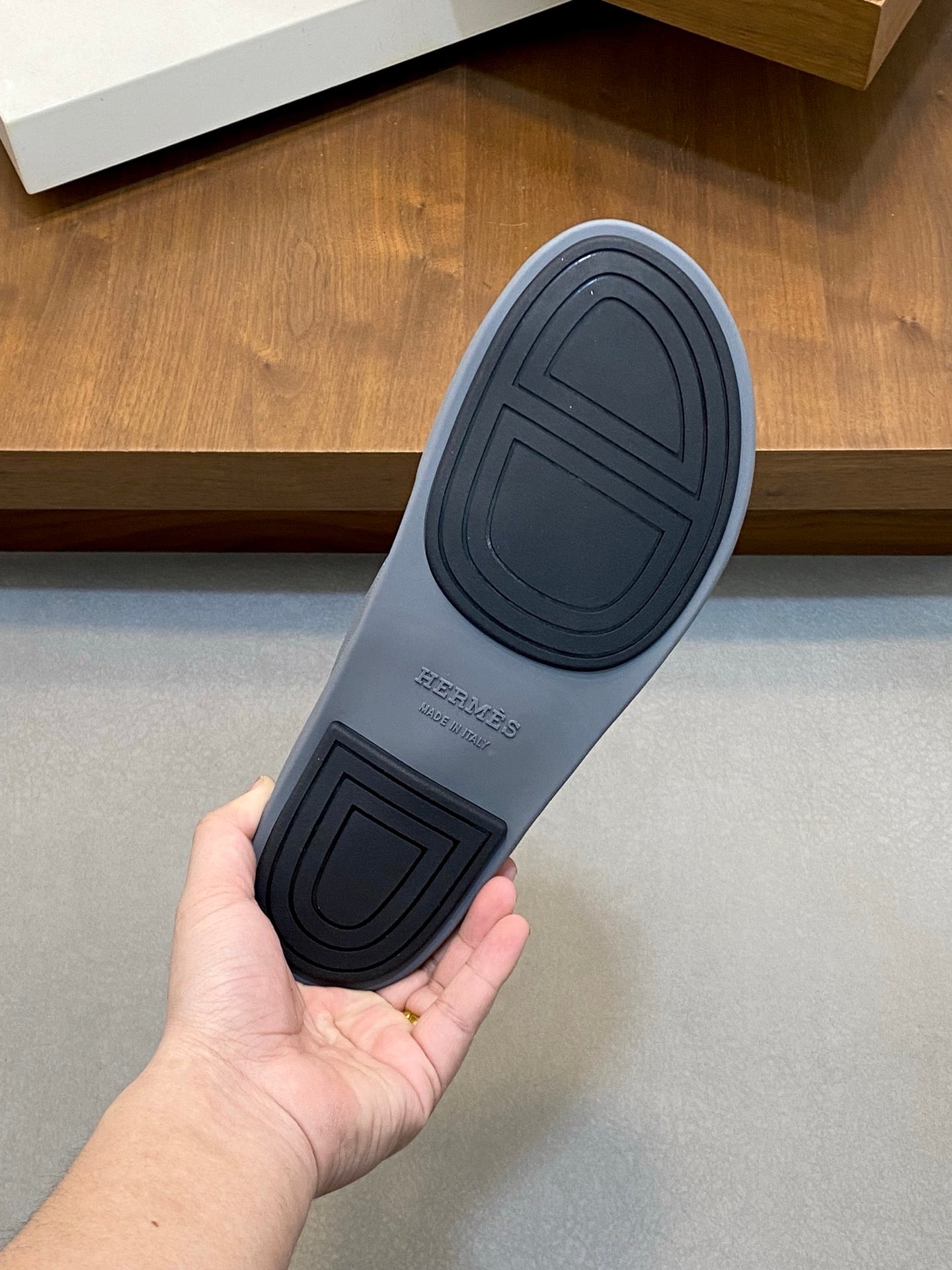 HM Men's Slide Grey Cowhide Leather 589000