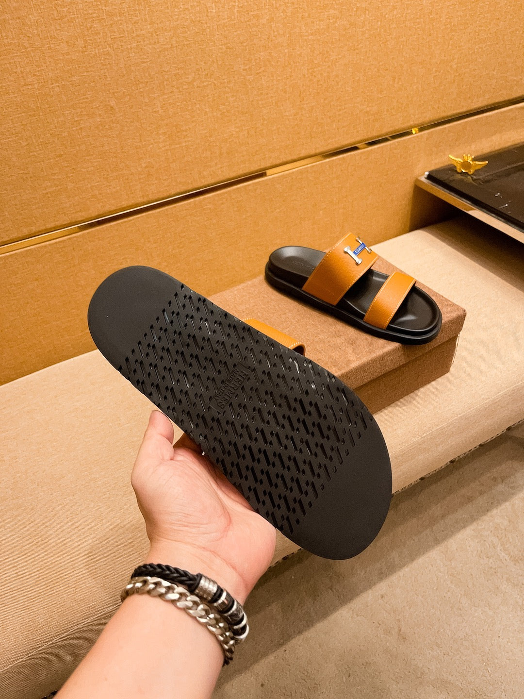 HM Men's Slide Orange Cowhide 602329