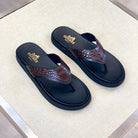 HM Men's Thong Sandals Brown Rubber Sheepskin 561669