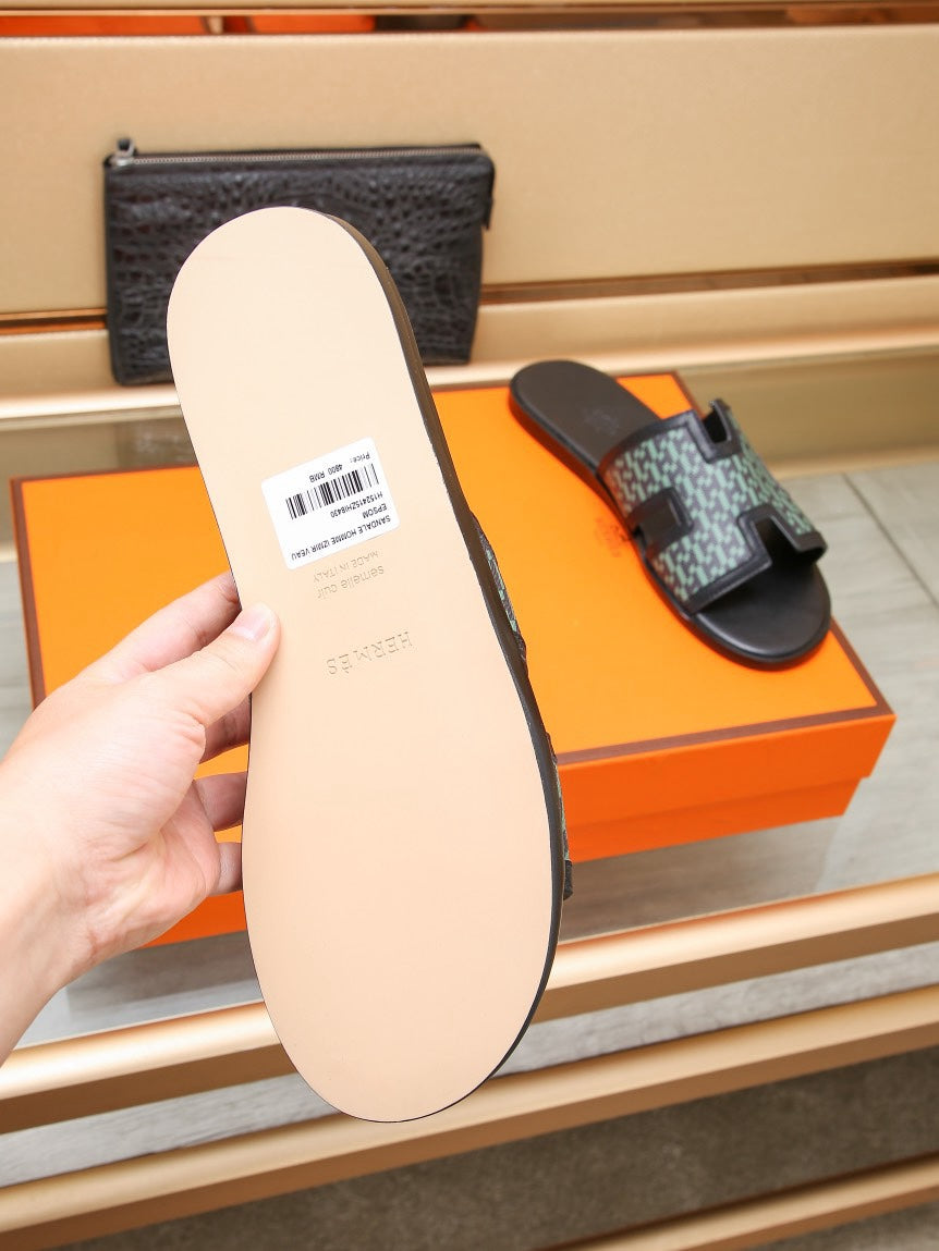 HM ORAN SANDAL BLACK AND SAPPHIRE LAMBSKIN
