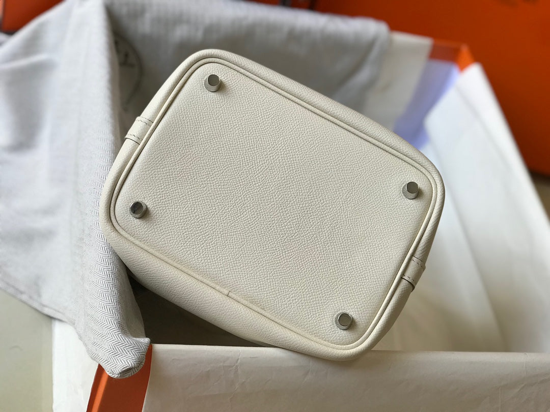 HM PICOTIN LOCK 18 WHITE EPSOM WITH BRAID STRAP