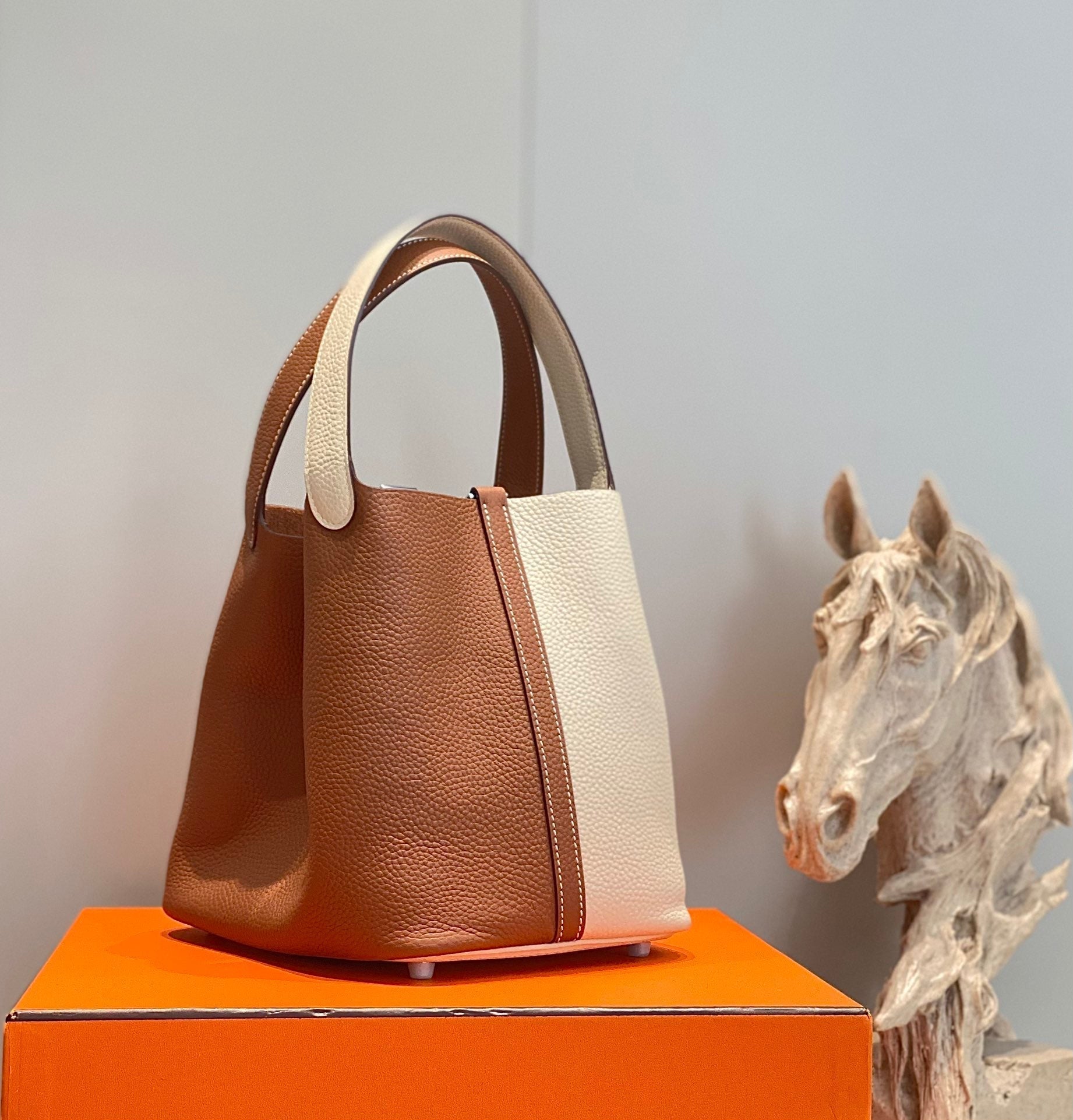 HM PICOTIN LOCK 22 TOGO LEATHER AND WHITE CALFSKIN