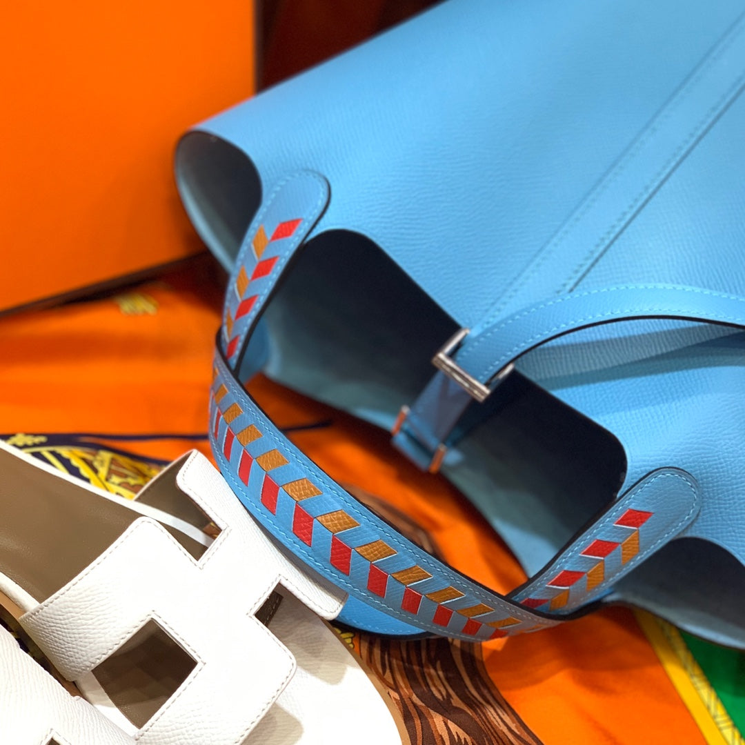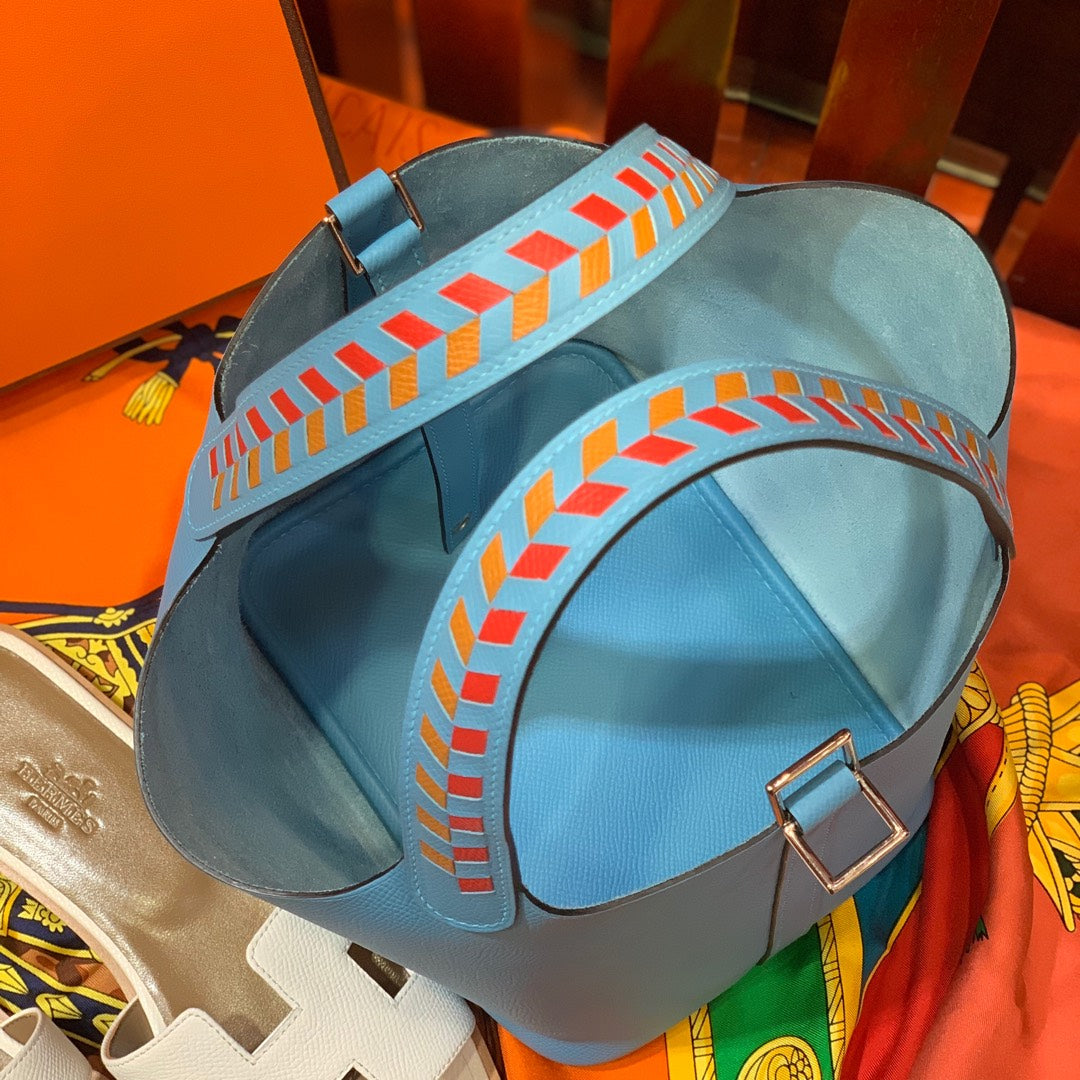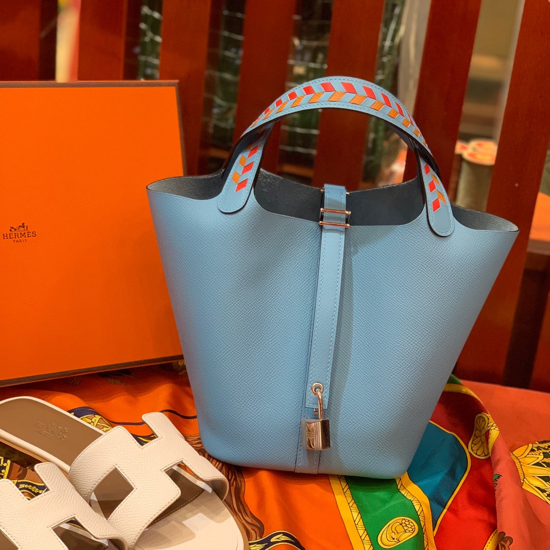 HM PICOTIN LOCK 22 SKY EPSOM LEATHER WITH BRAID STRAP