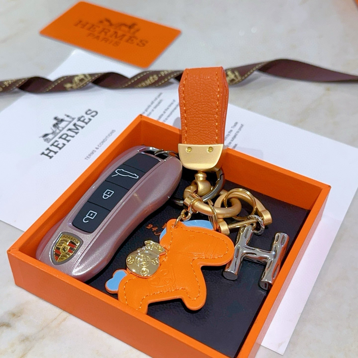 HM Rodeo Pegase Bag Charm Orange Lambskin