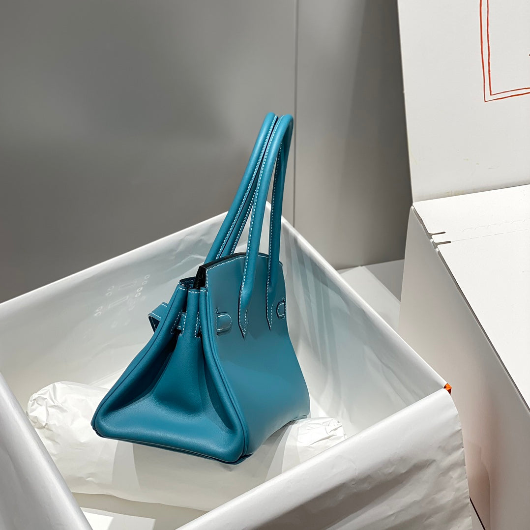 HM Shoulder Birkin 29cm Blue Denim Swift Leather Silver Hardware