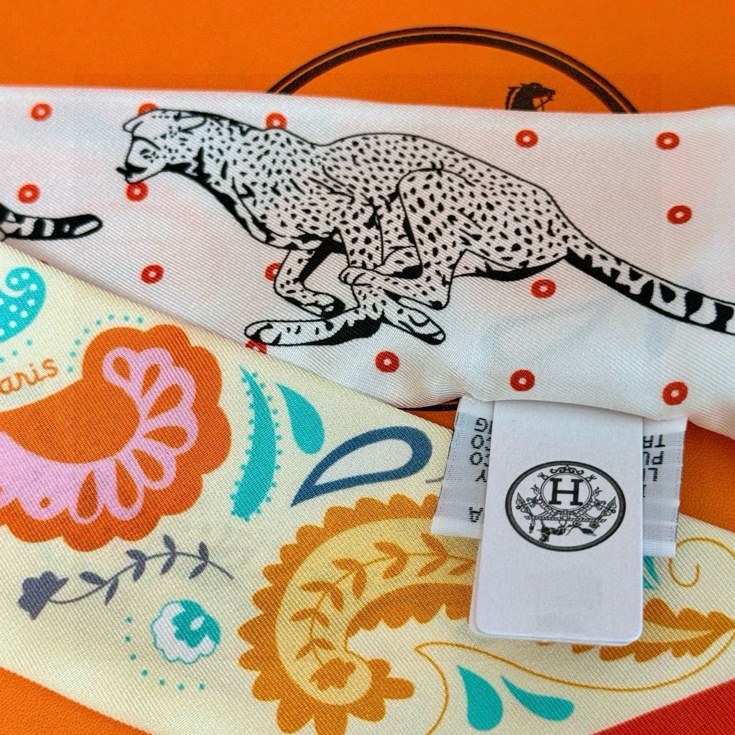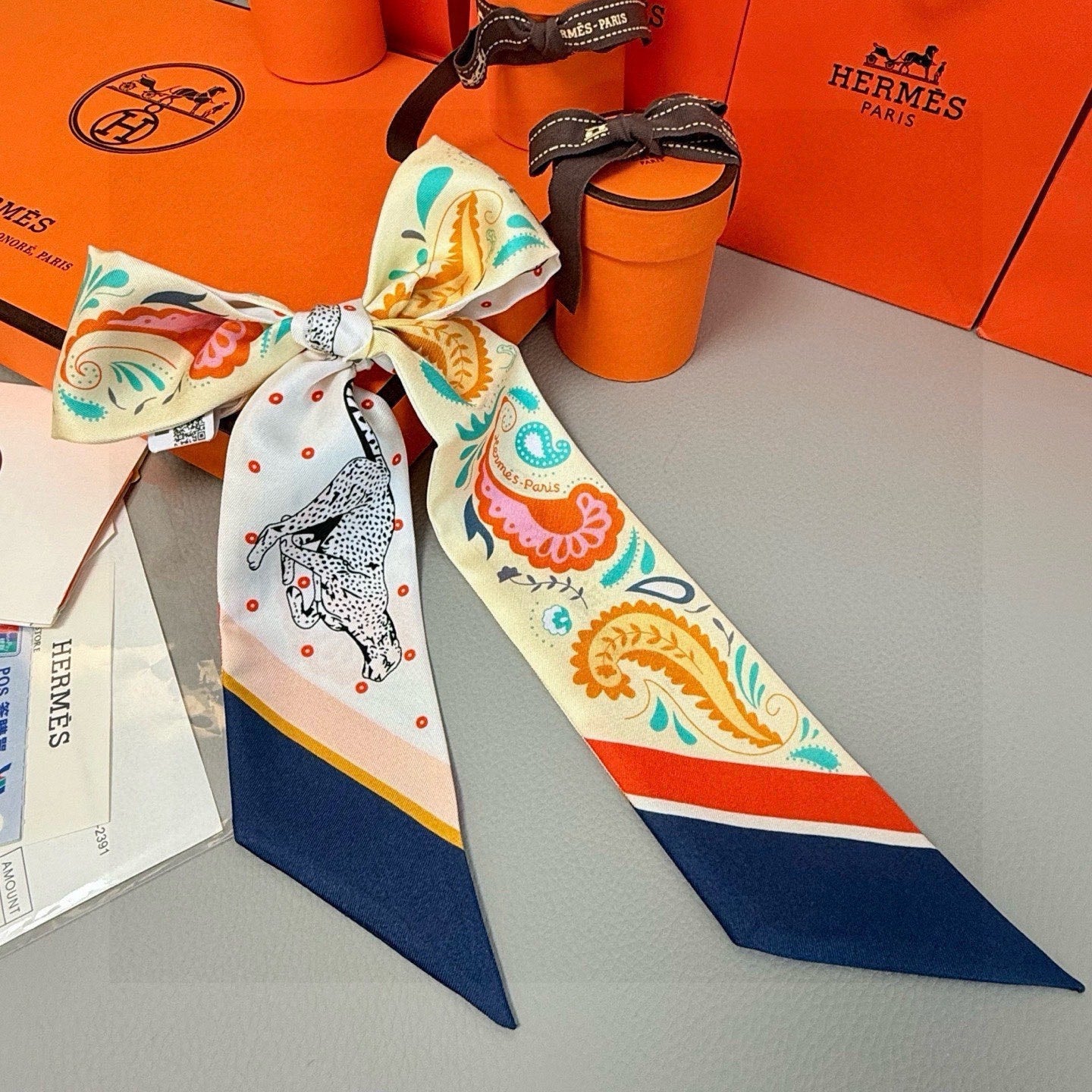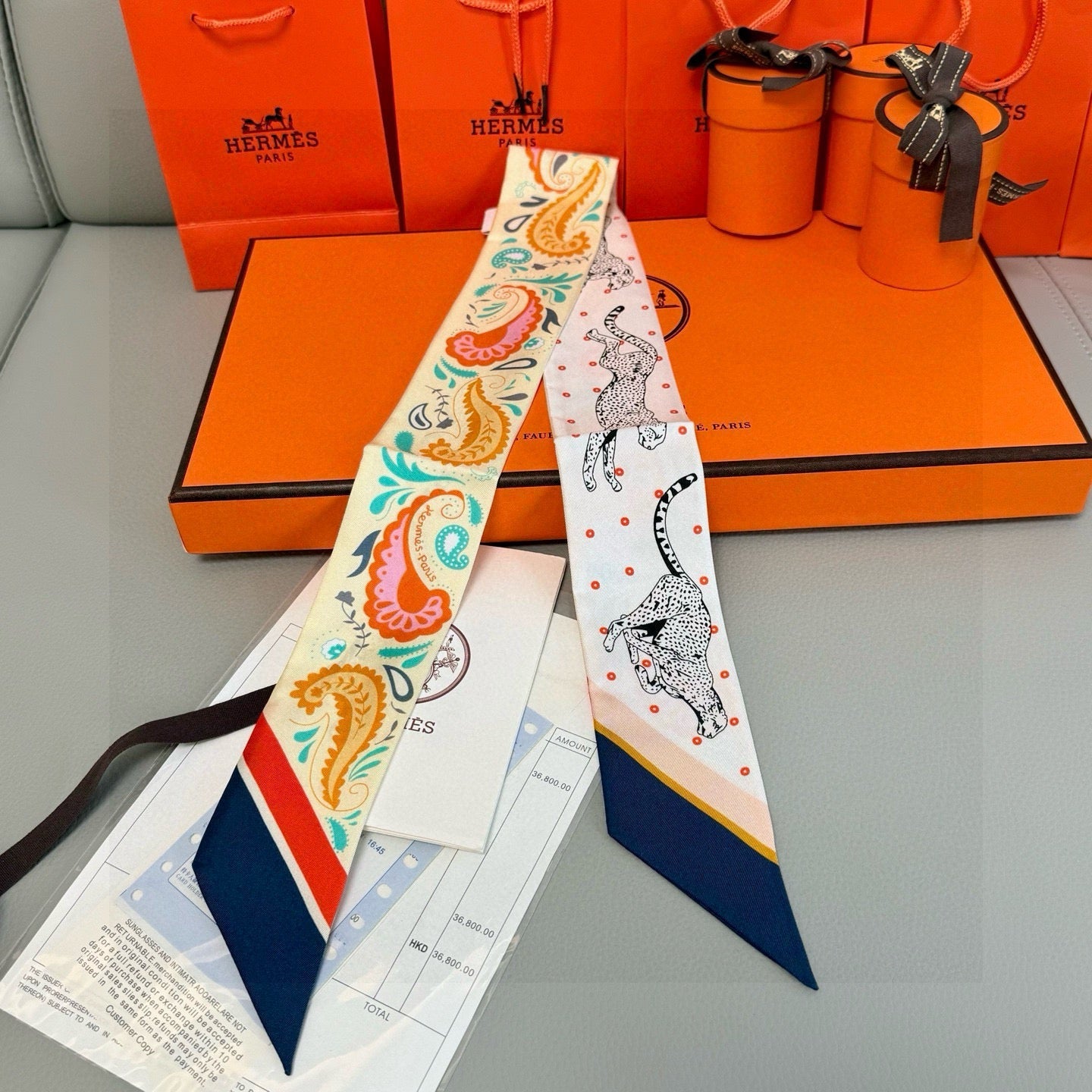 HM Twilly Mini Scarf 86CM Beige Blue Mulberry Silk 965635