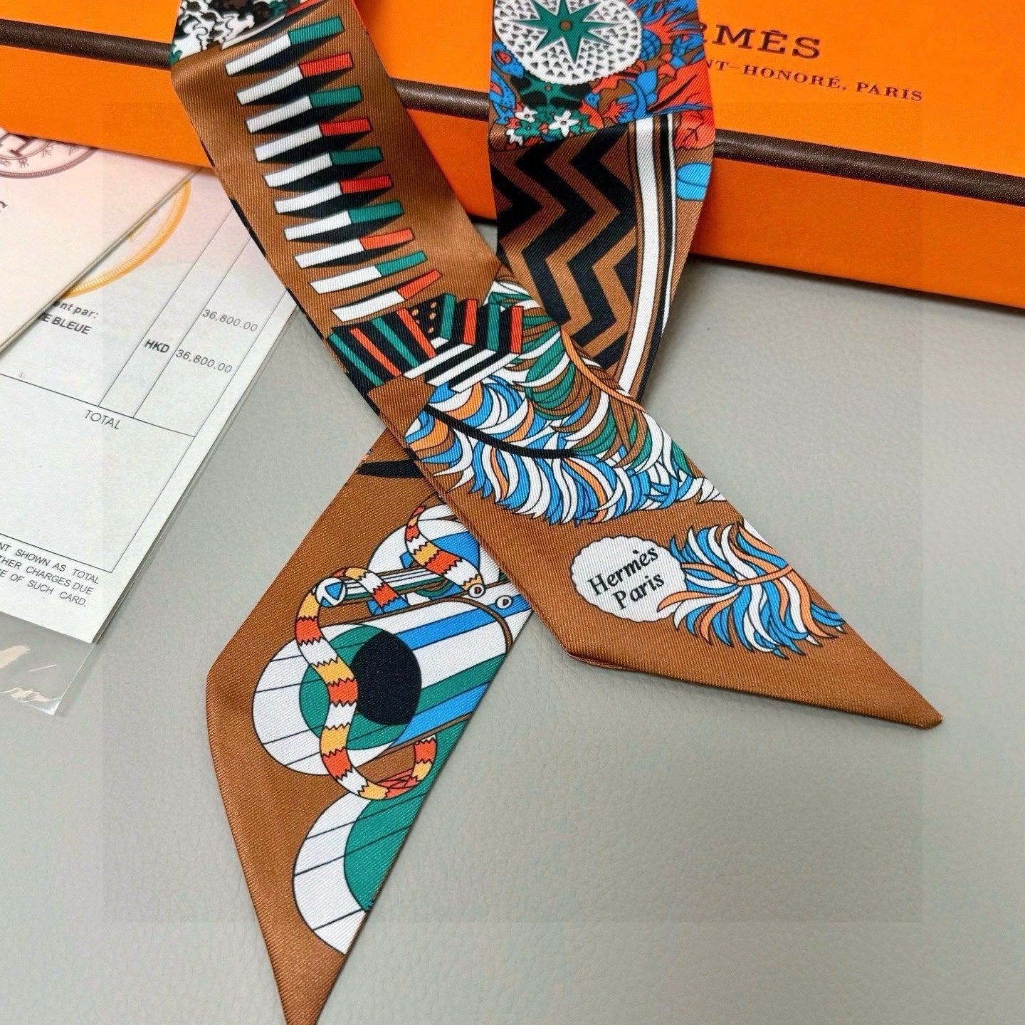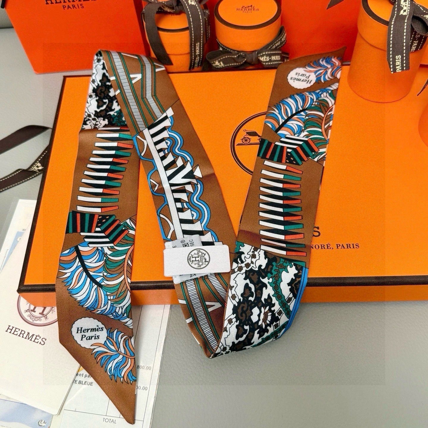 HM Twilly Mini Scarf 86CM Brown Blue Mulberry Silk 969048