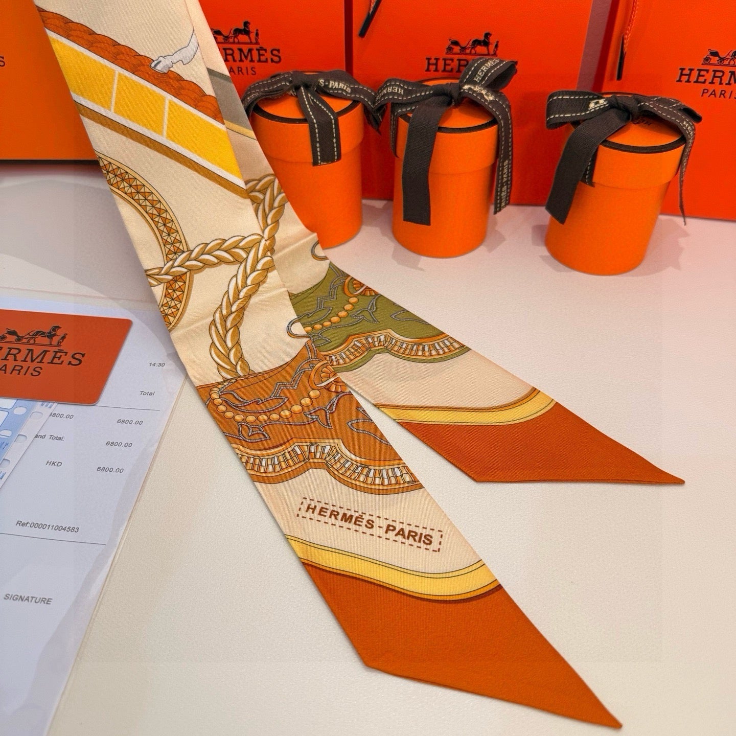 HM Twilly Mini Scarf 86CM Orange Beige Mulberry Silk 968830