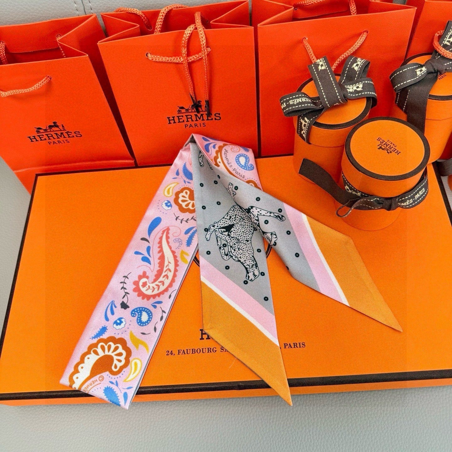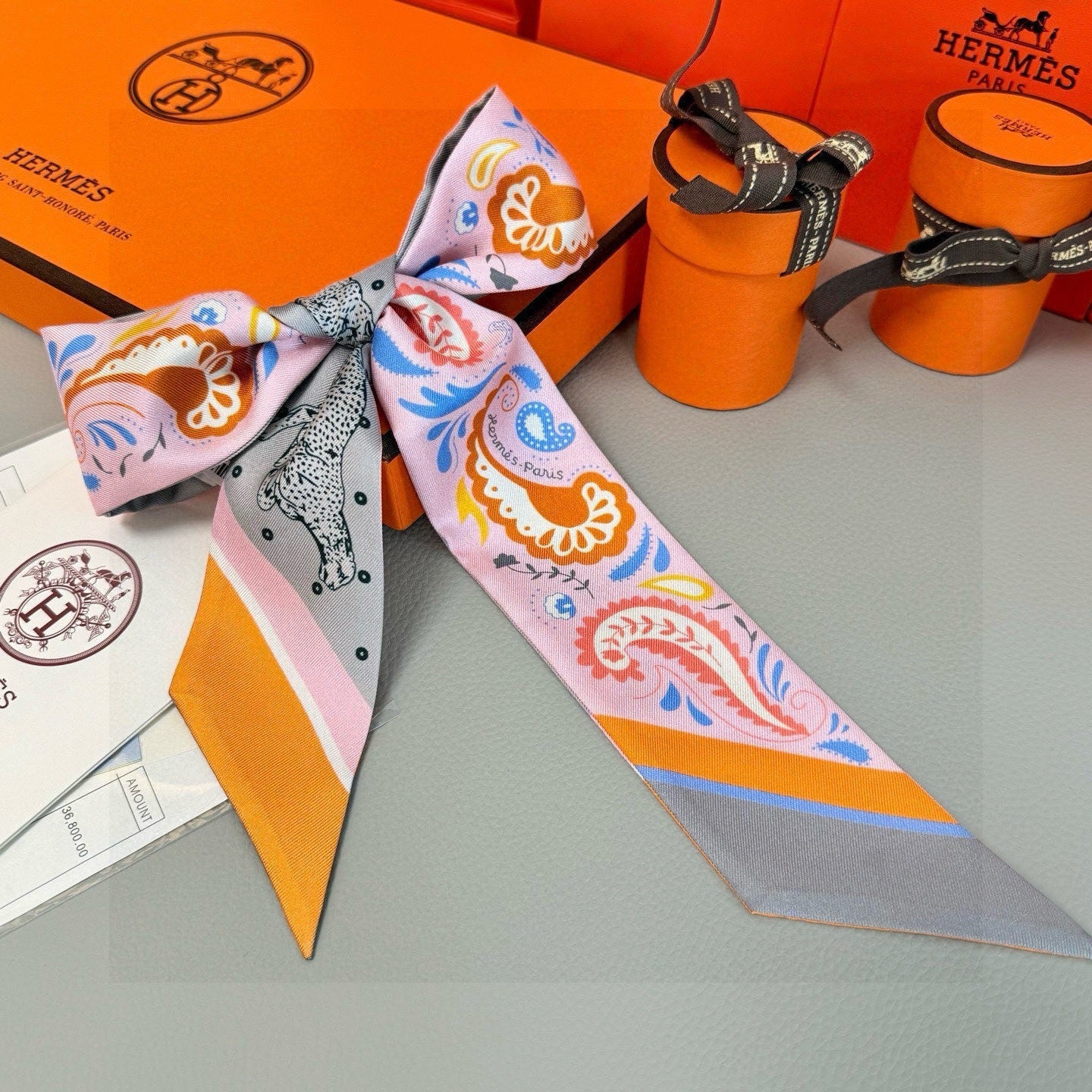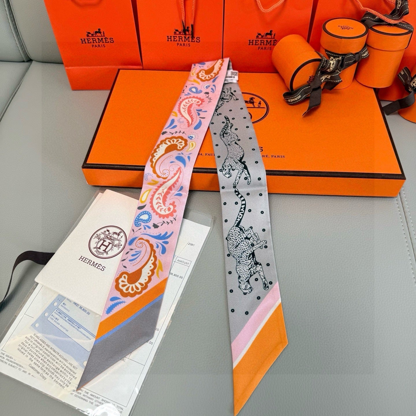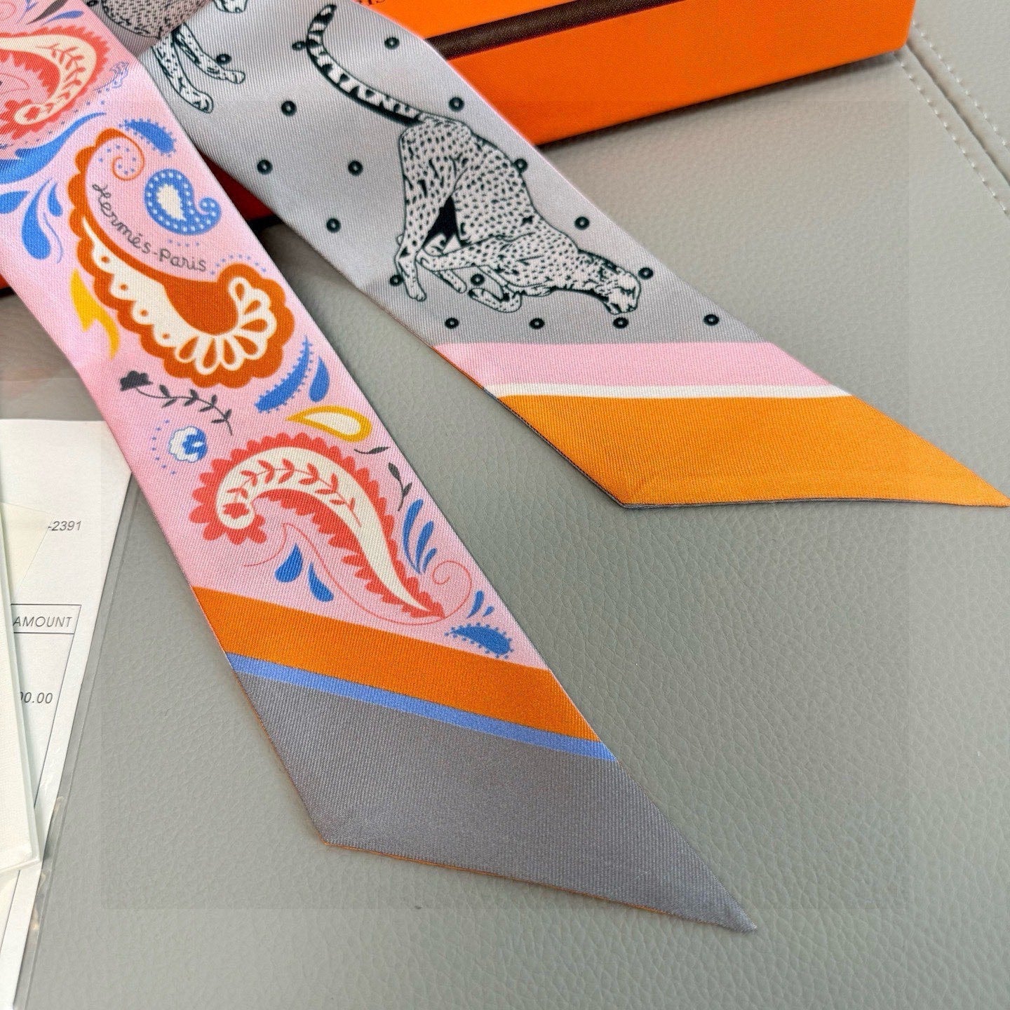 HM Twilly Mini Scarf 86CM Pink Gray Mulberry Silk 965632