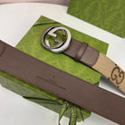 INTERLOCKING G BLACK SILVER BUCKLE 40MM BEIGE CANVAS