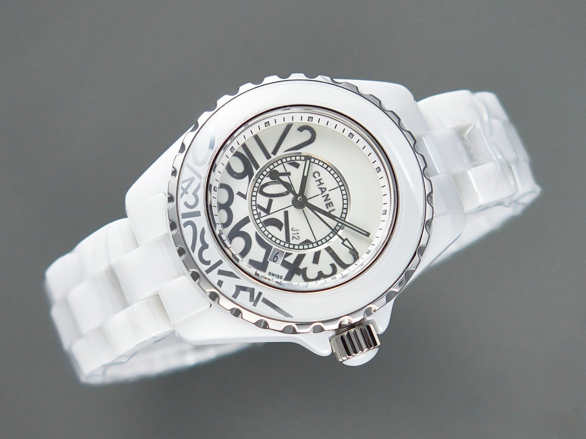 J12 Date Quartz White Ceramic Stainless Graffiti Limited