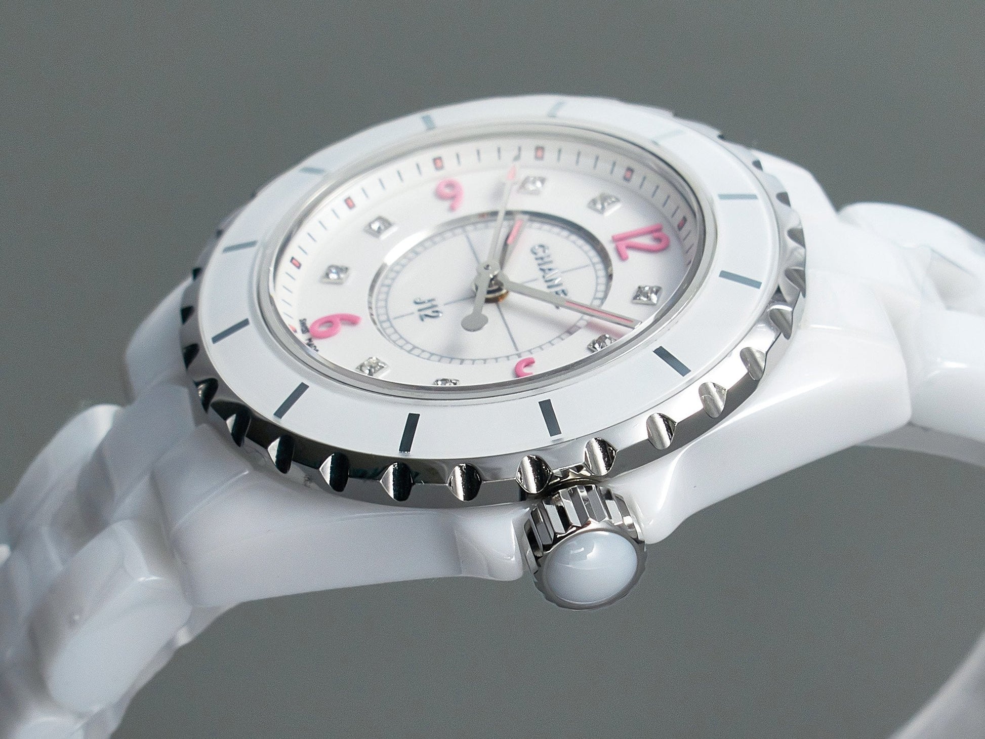 J12 Quartz White Ceramic Pink Diamond Numerals White Dial