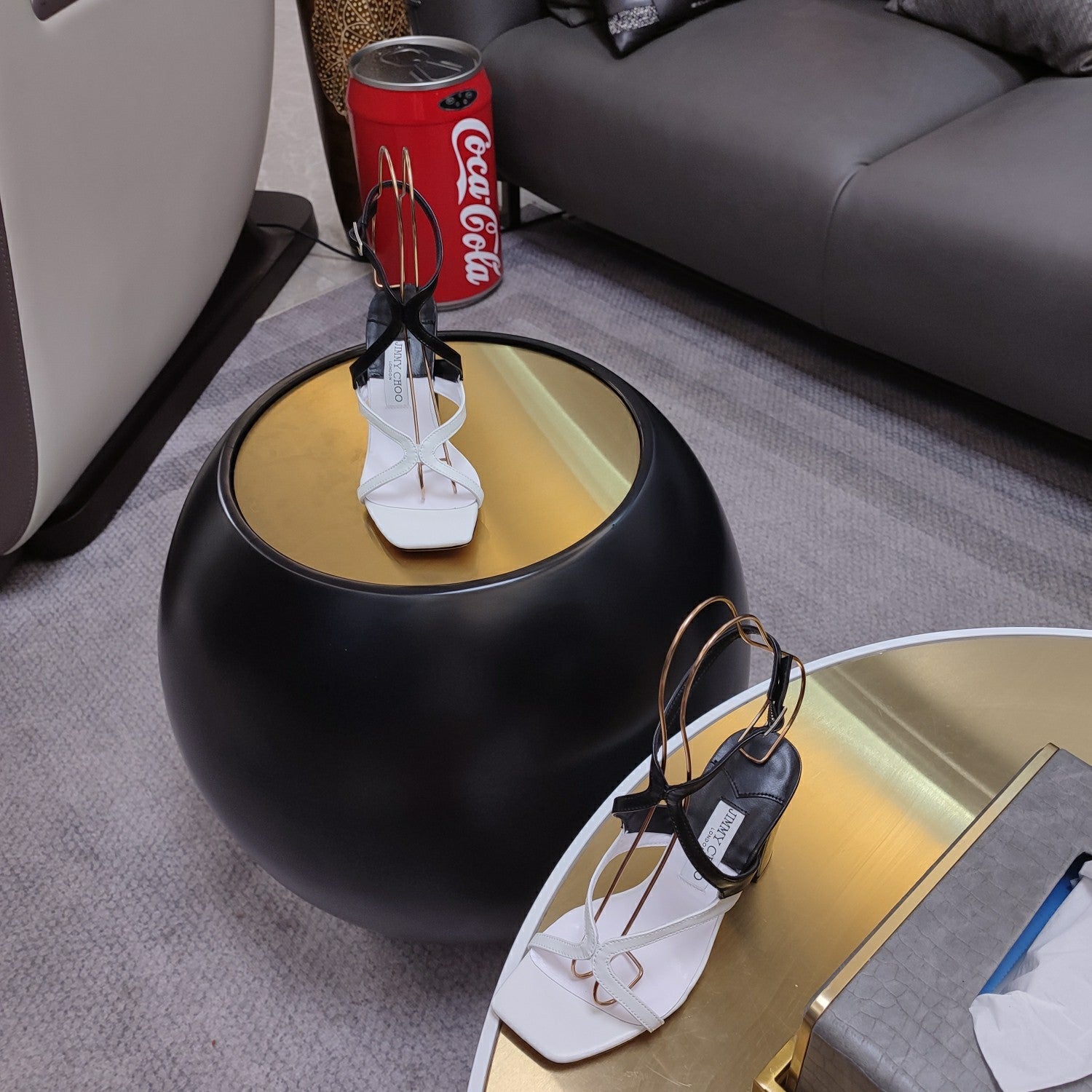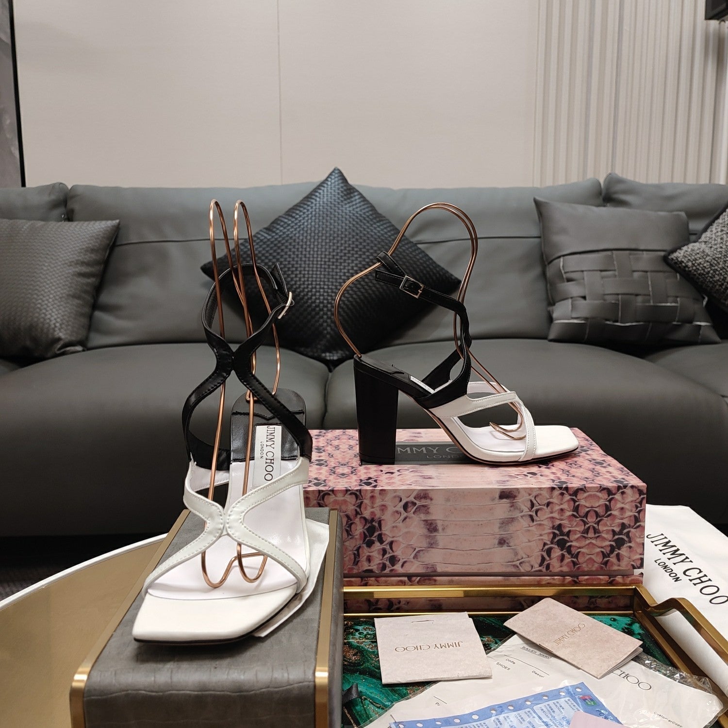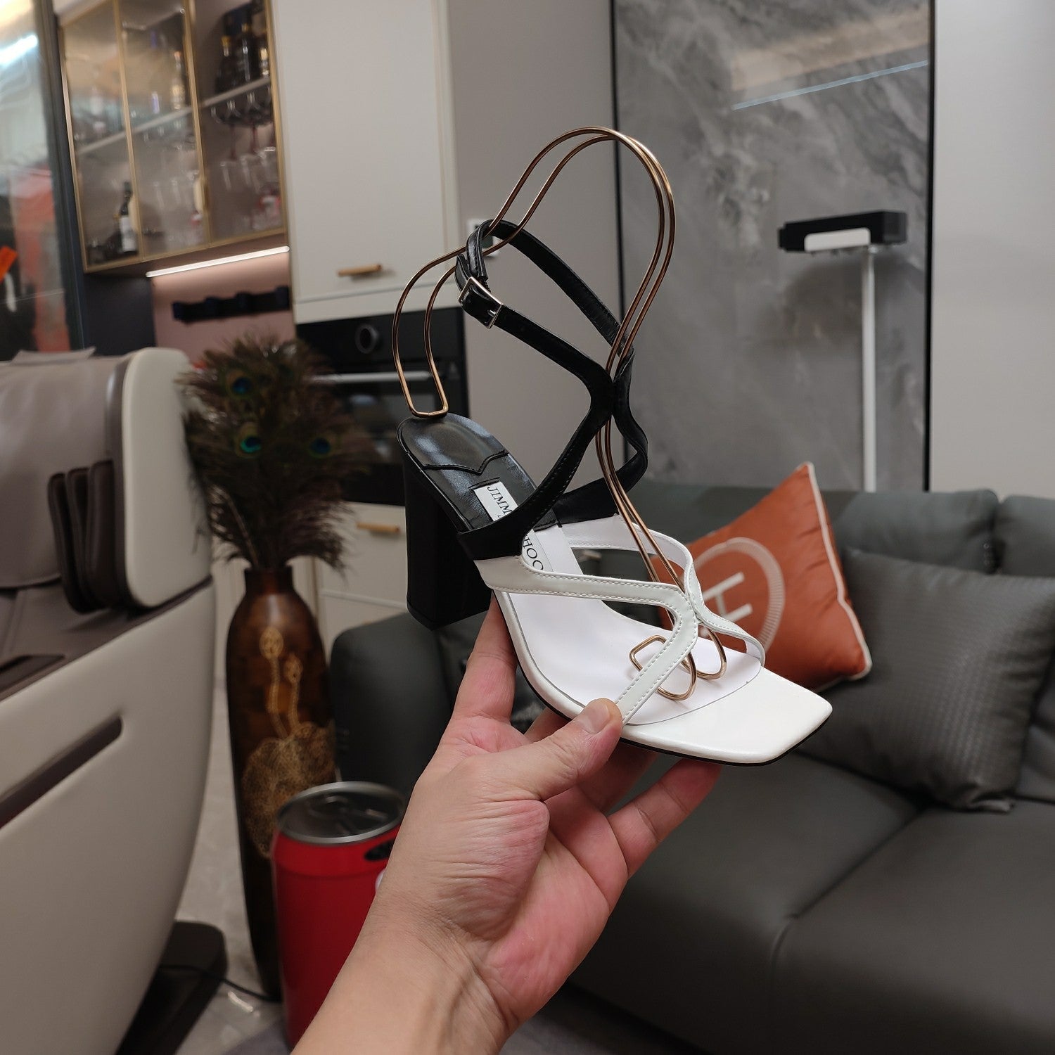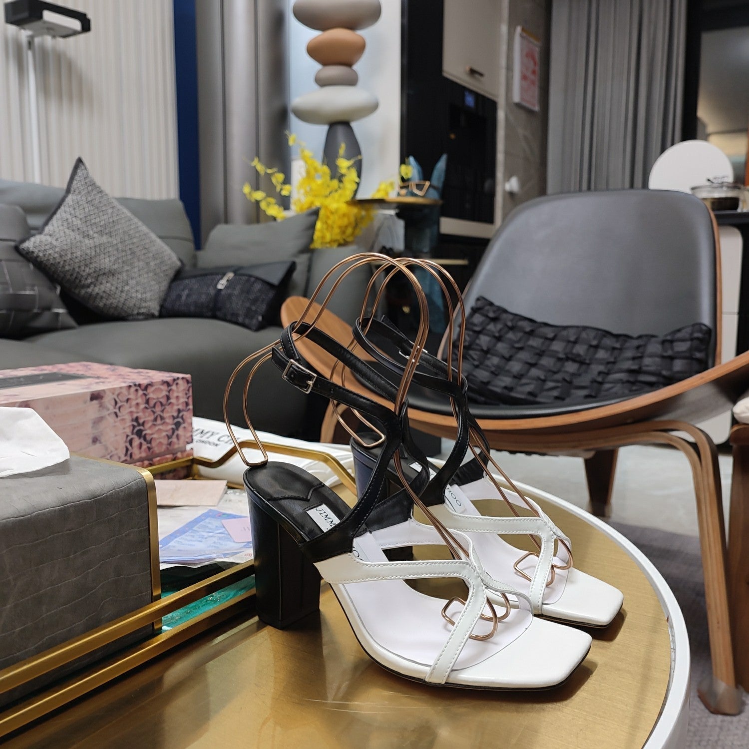 Jimmy 25 Azie Colorblock Sandal 11CM White mix Black Calfskin 240112