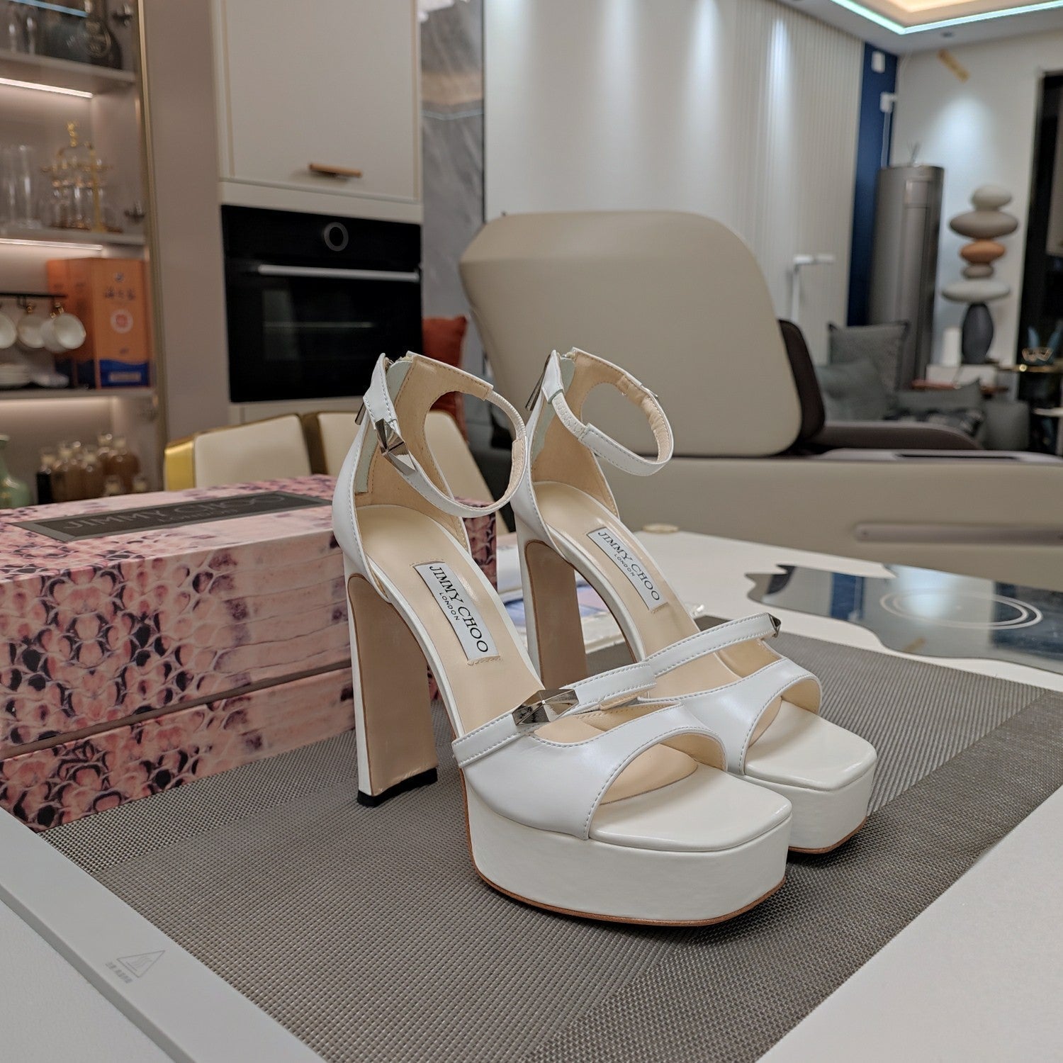 Jimmy 25 Platform Sandal Heels White Nappa Cowhide 240007