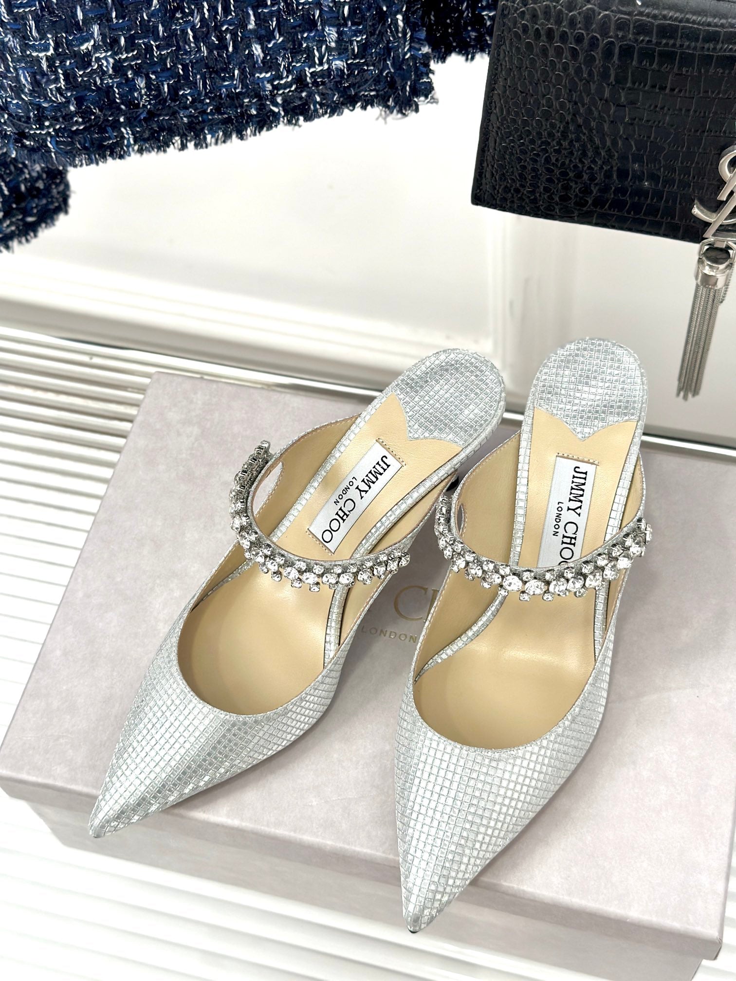 Jimmy Bing 65mm In White Silver Stone Studded Cowhide Mules 593194