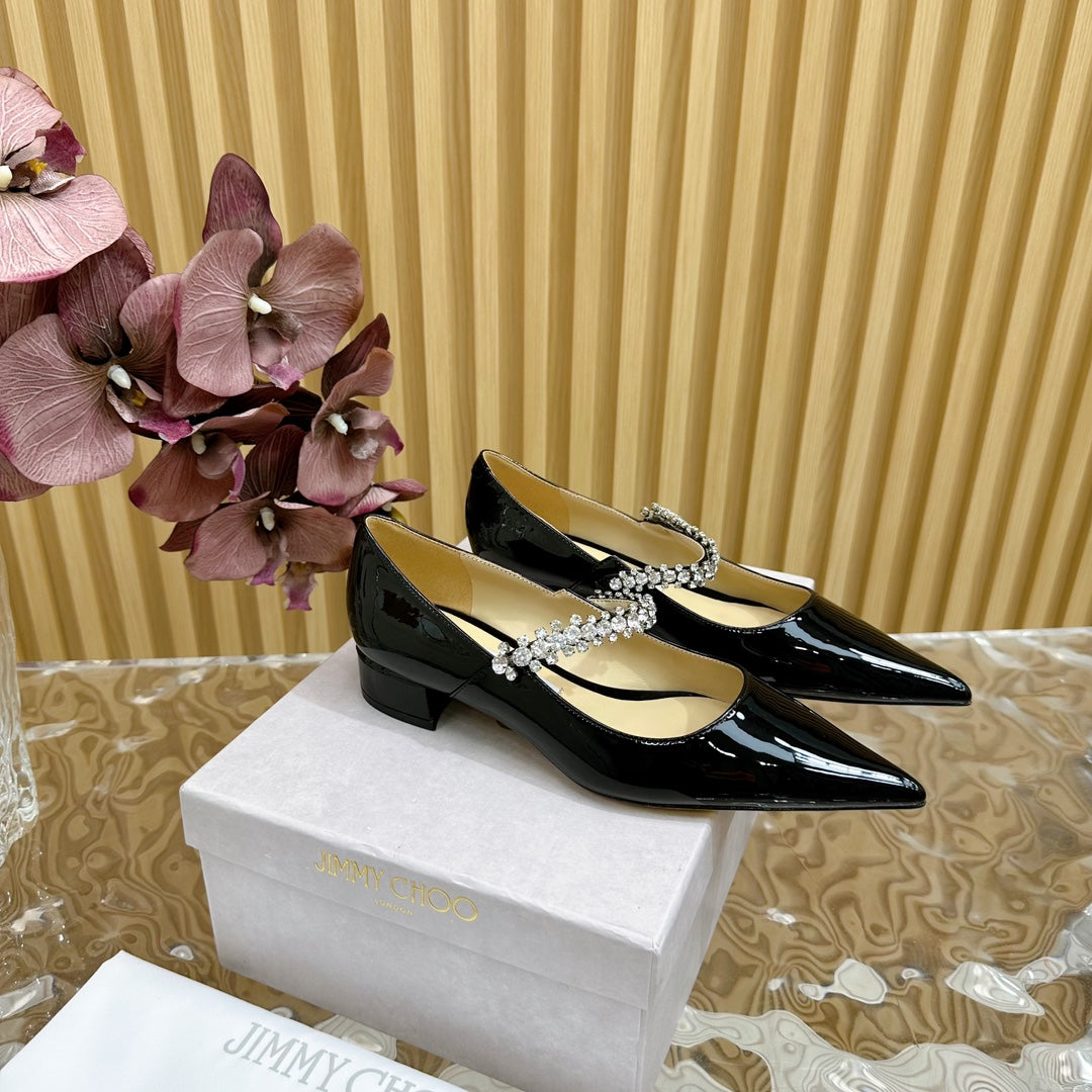 Jimmy Crystal-Strap Ballerina Shoes In Black Glossy Cowhide 641044