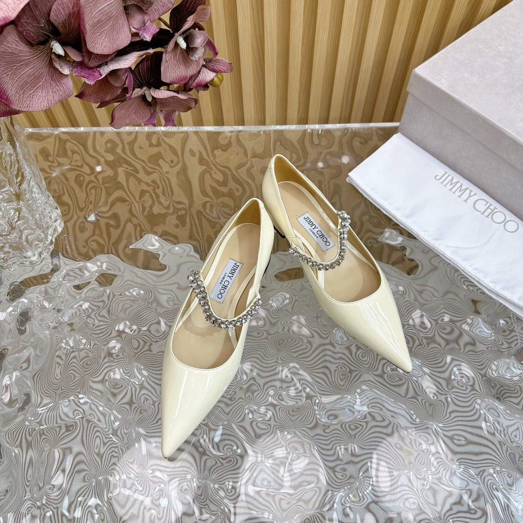 Jimmy Crystal-Strap Ballerina Shoes In Ivory White Glossy Cowhide 641042