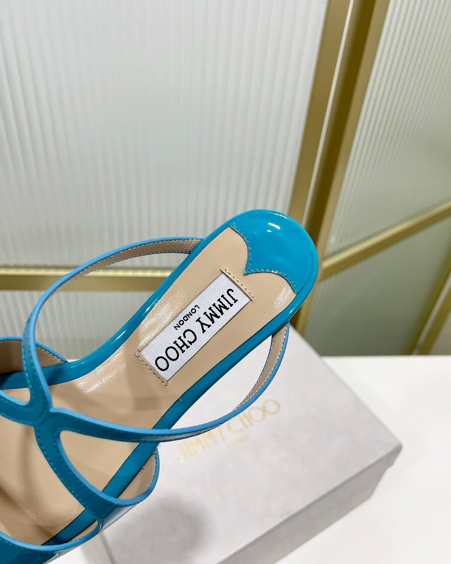 Jimmy Sandals In Blue Turquoise Glossy Cowhide 587681