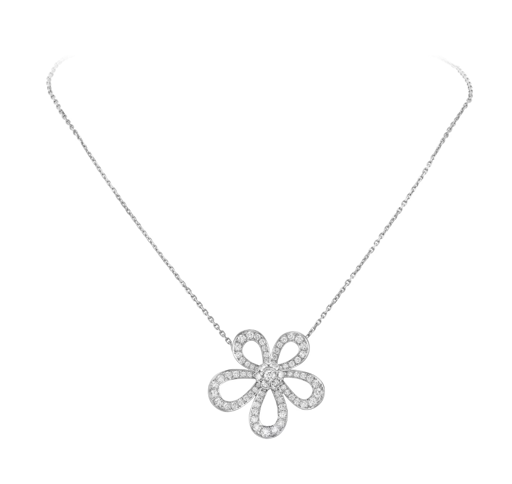 LACE FLOWER SILVER PENDANT DIAMOND NECKLACE