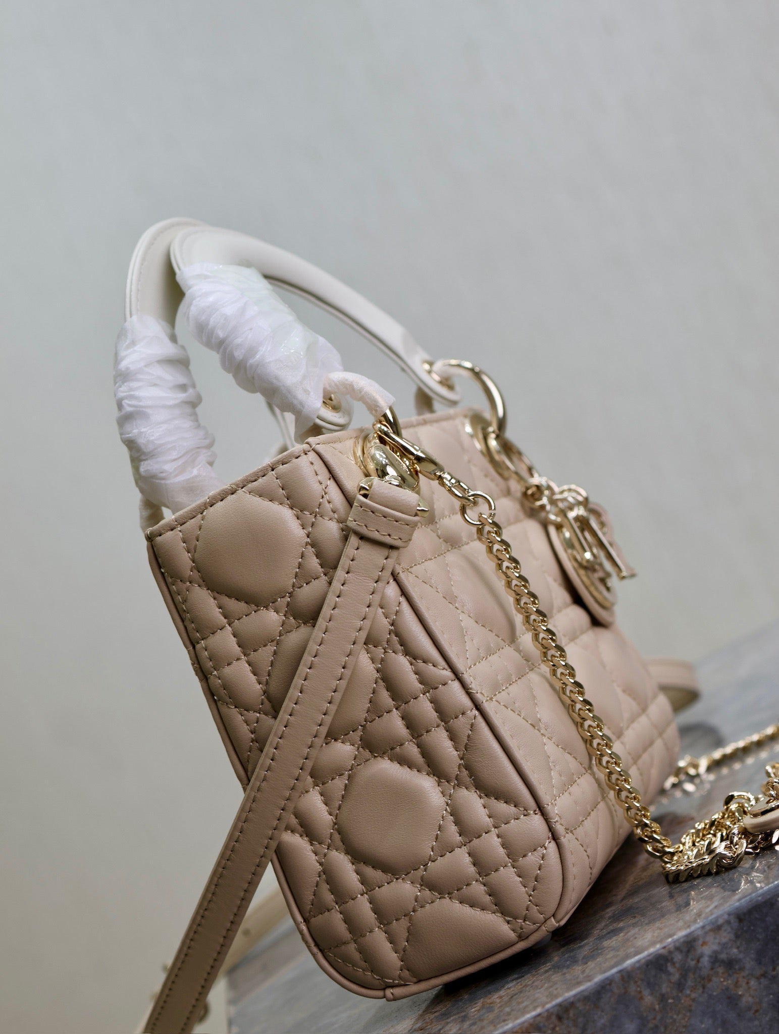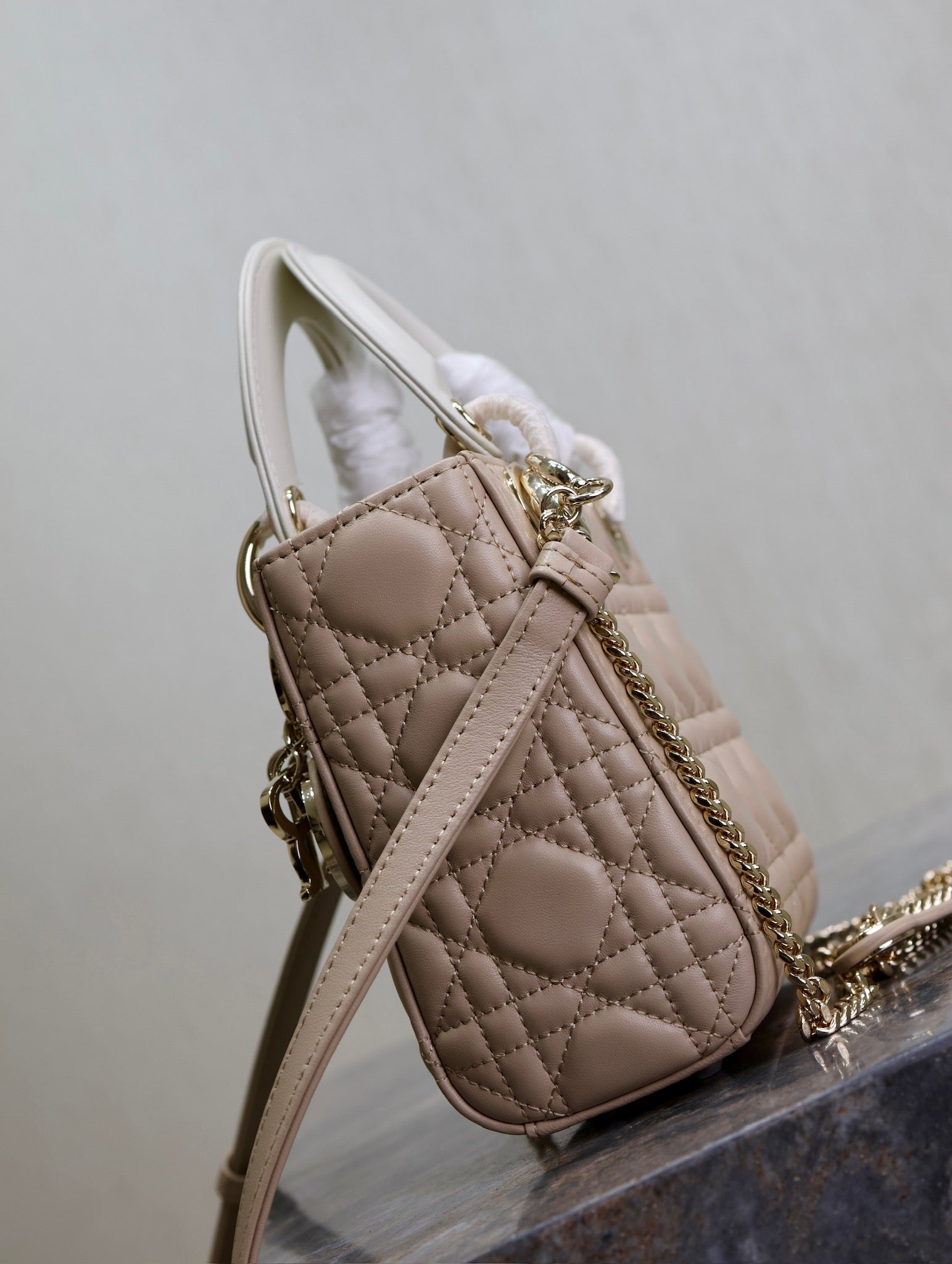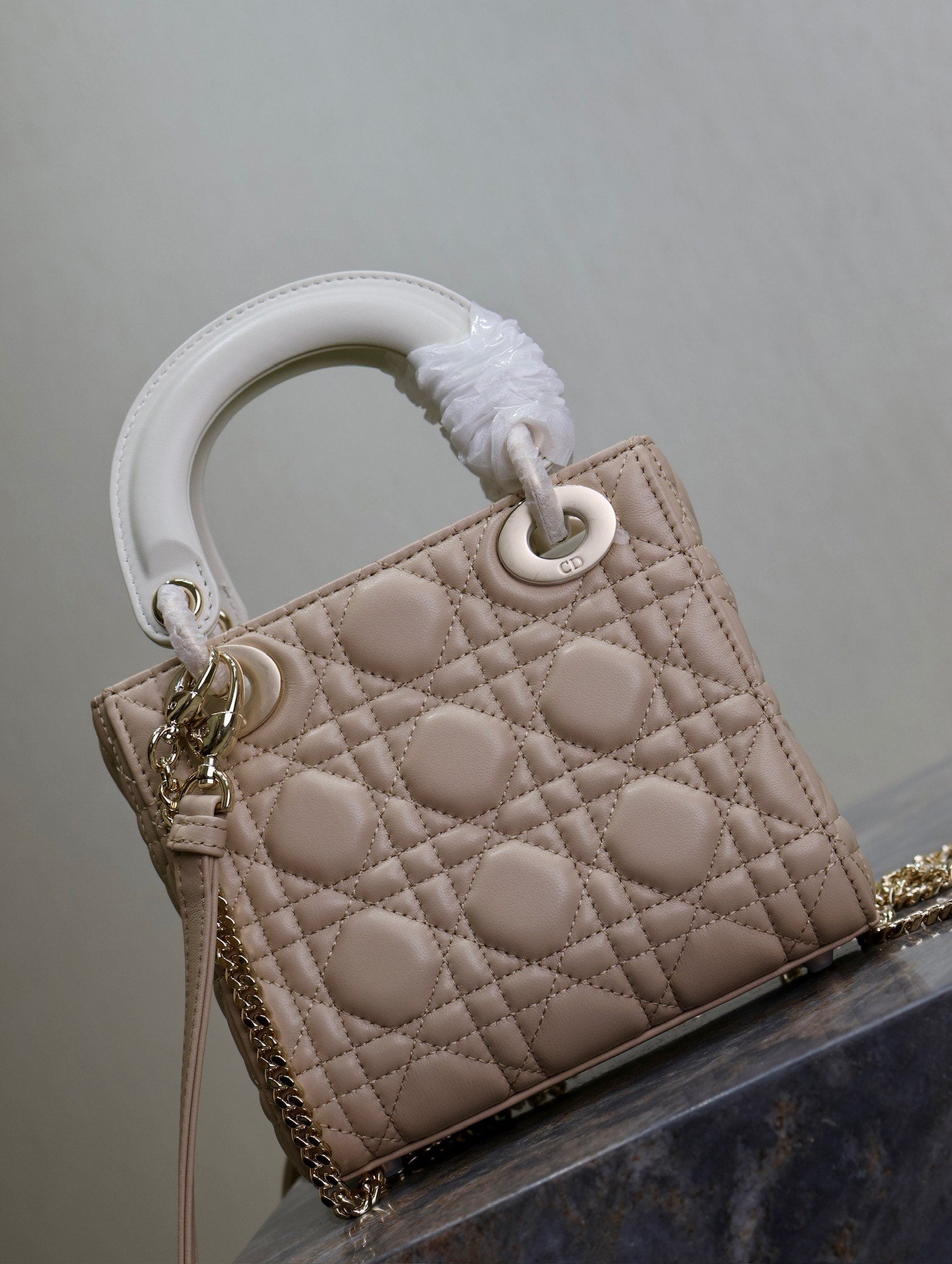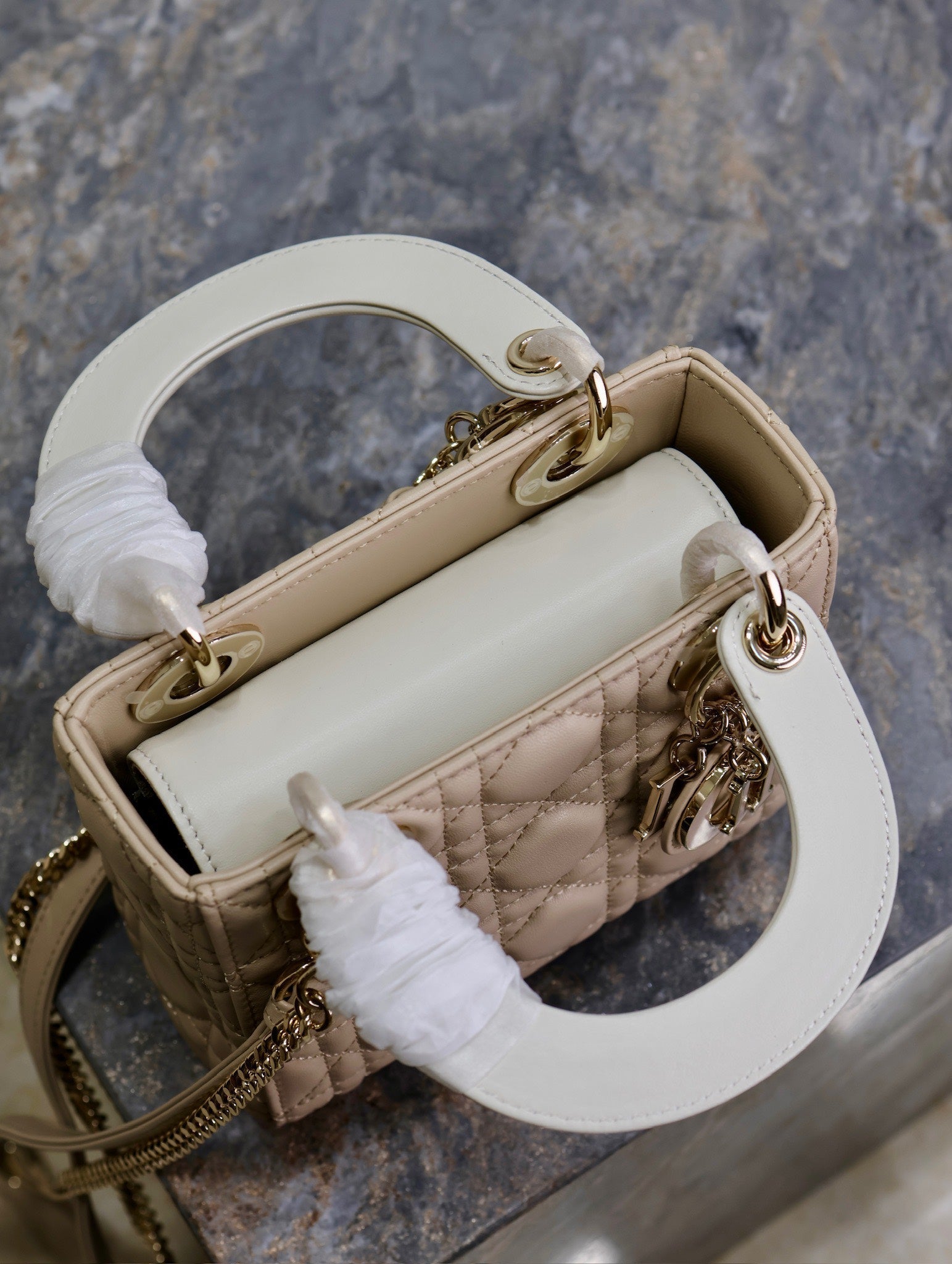 Lady Bag 17cm Beige White Lambksin