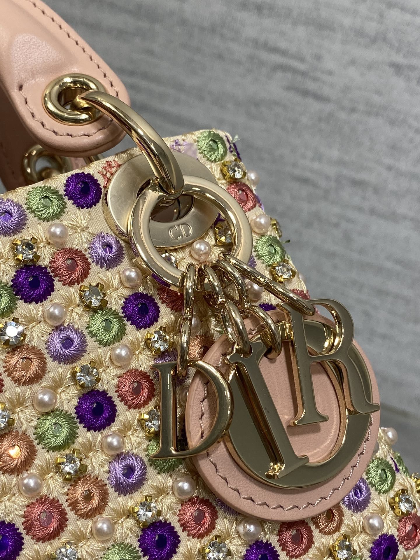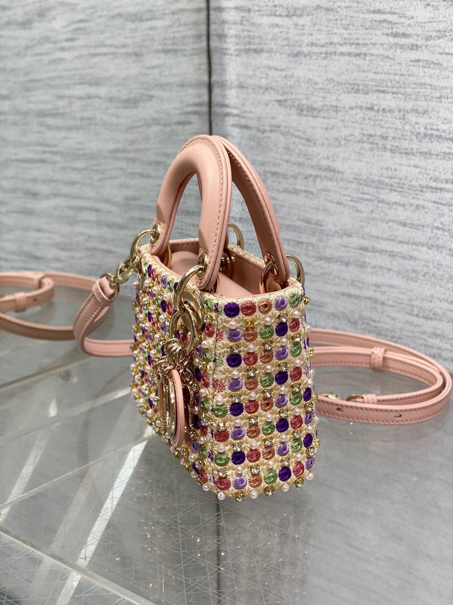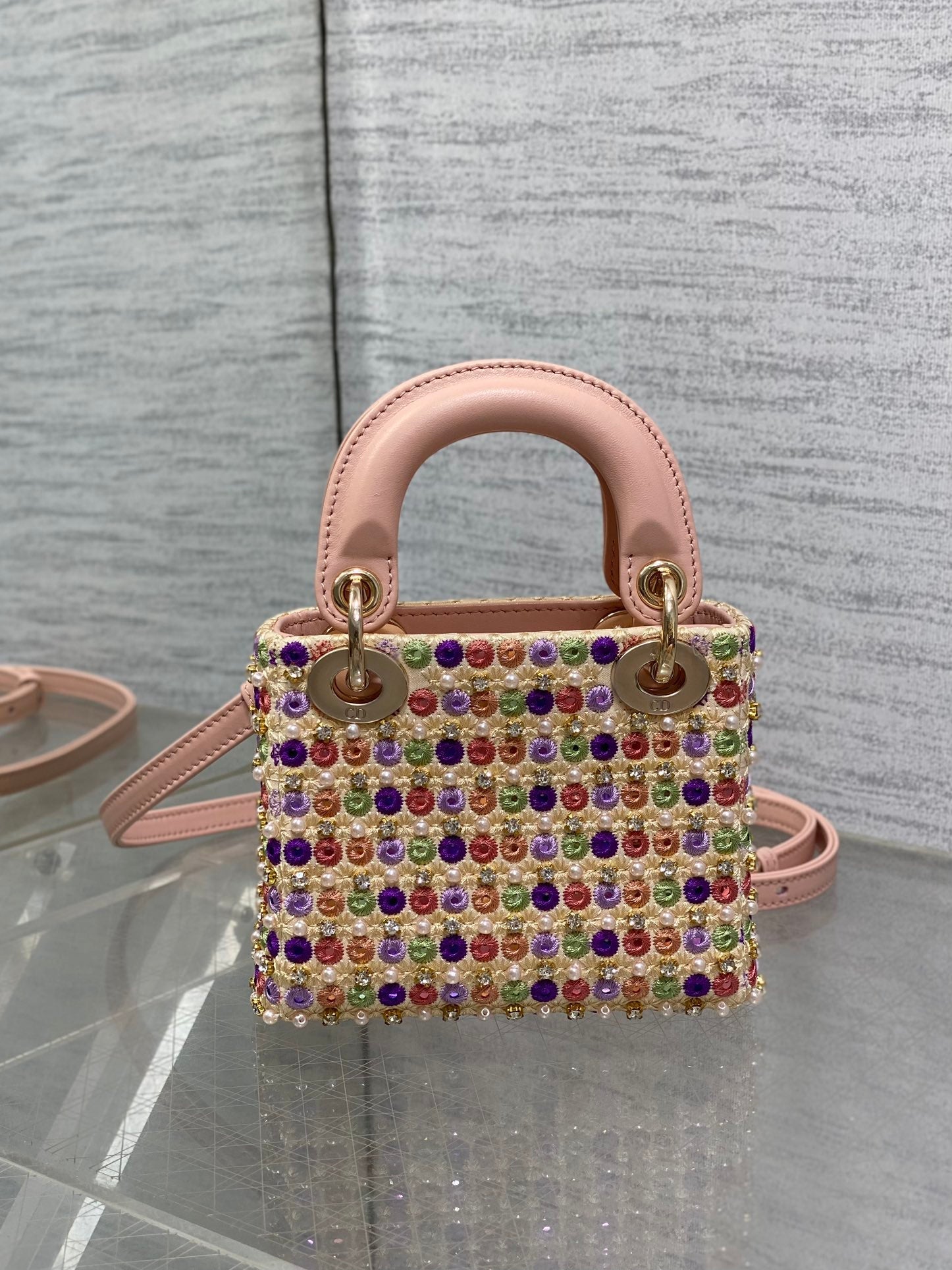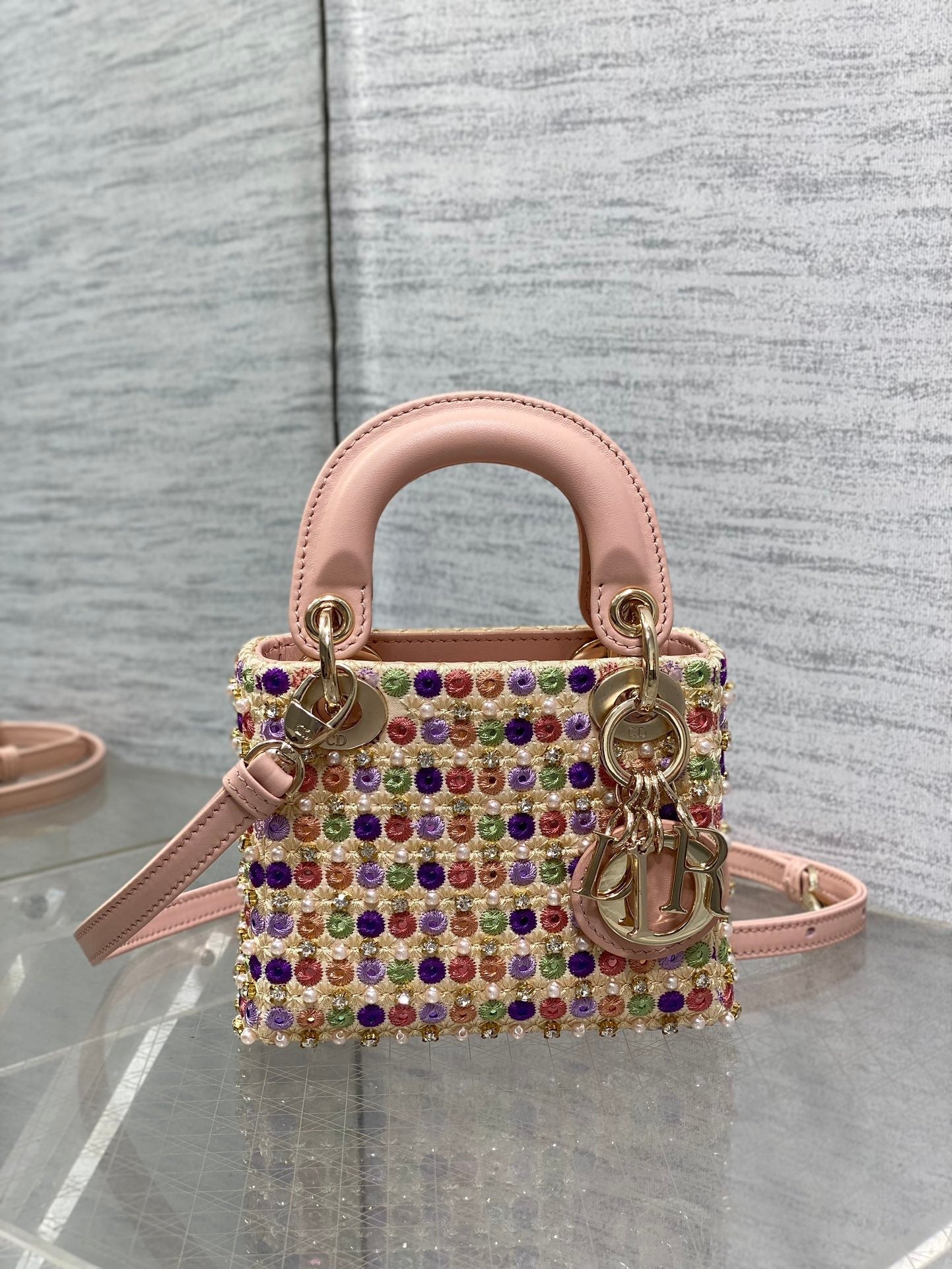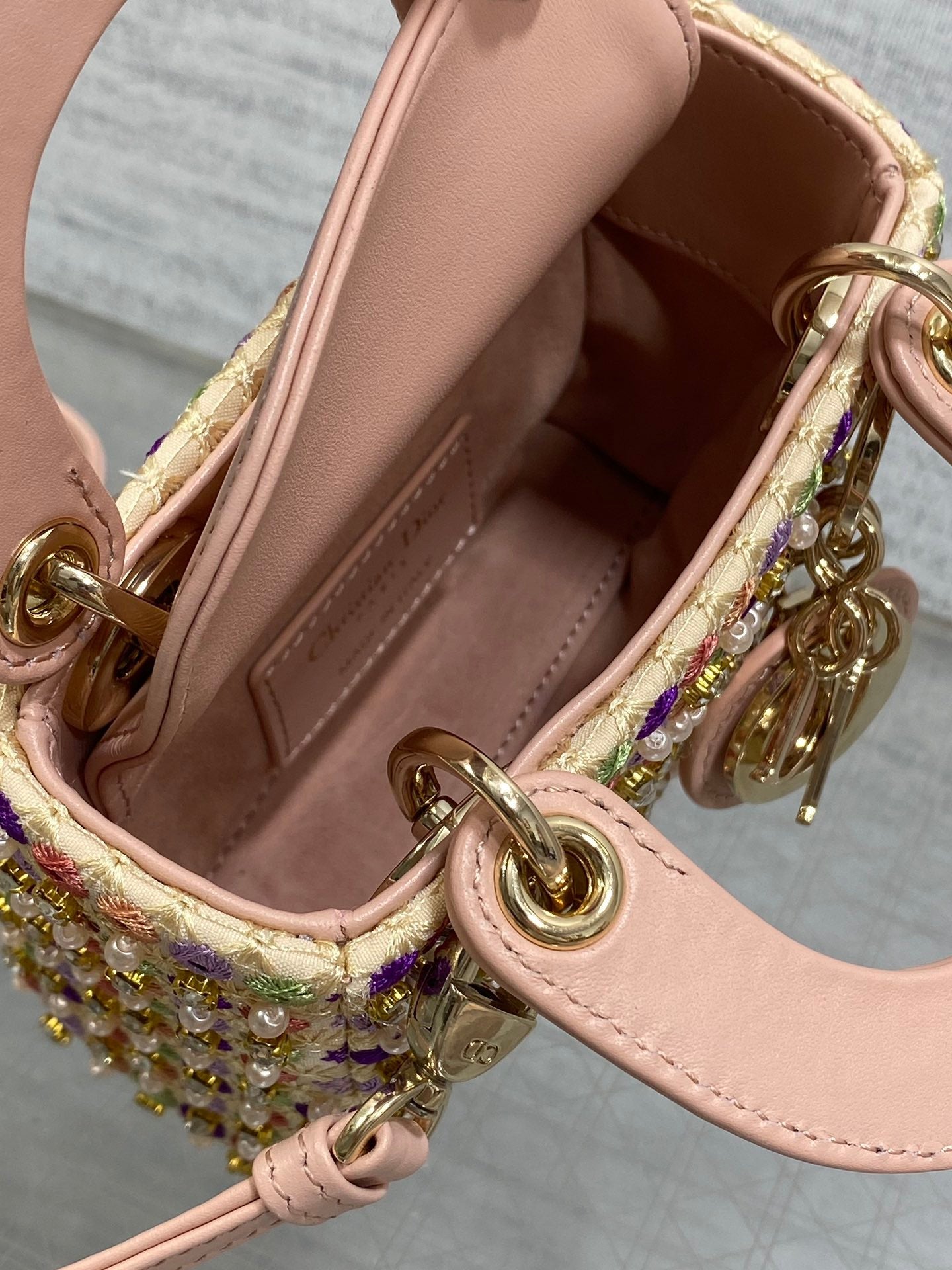 Lady Micro Bag 10cm Pink Lambskin Gold Fabric