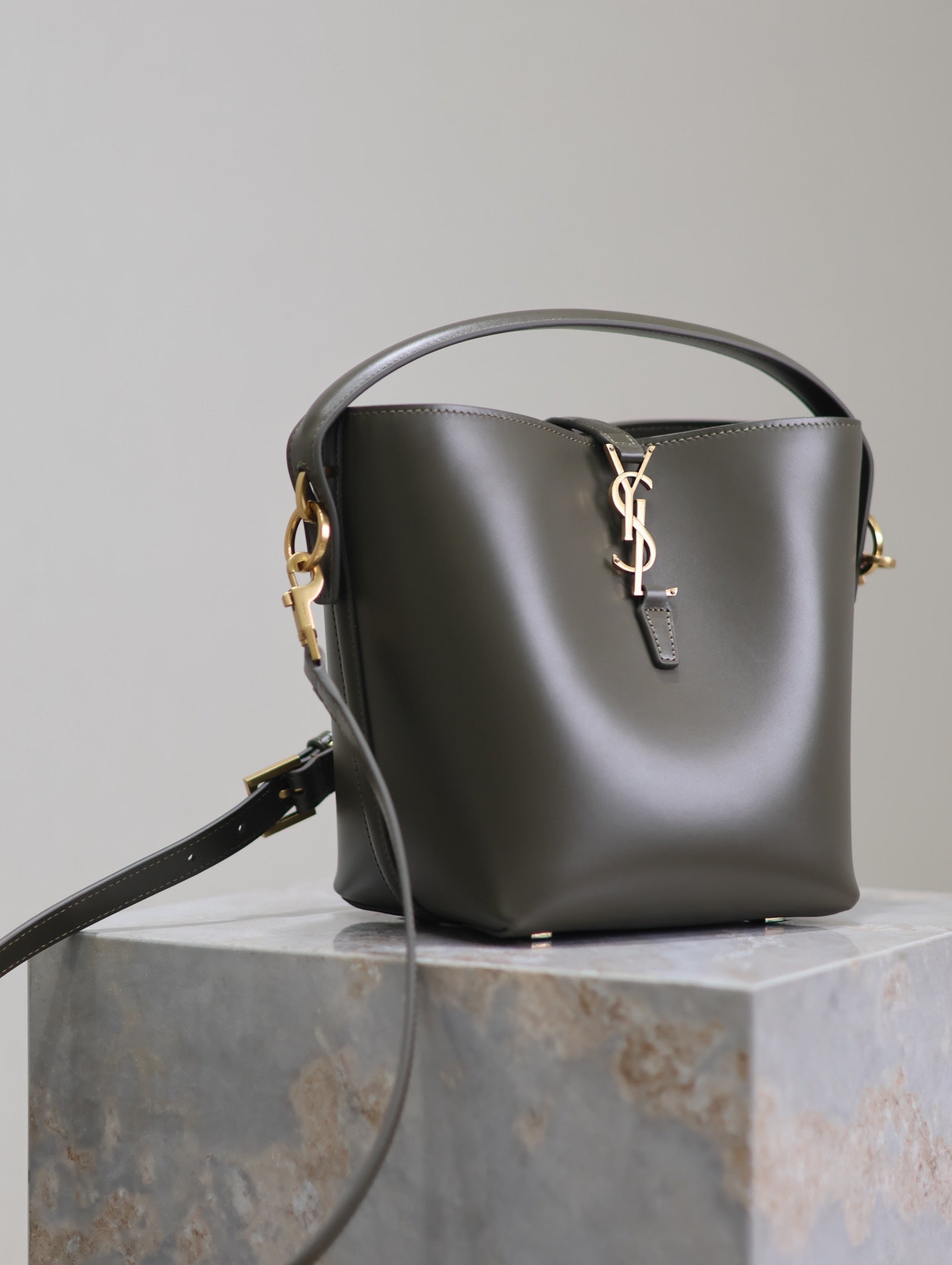 LE 37 SMALL BUCKET BAG 20 IN KHAKI GREEN CALFSKIN GOLD HARDWARE