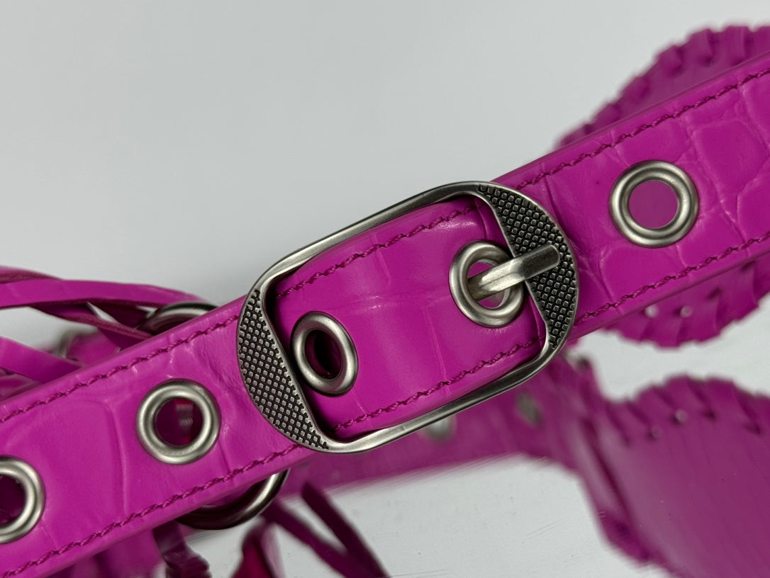 LE CAGOLE SMALL SHOULDER BAG 26 WITH RHINESTONES IN DEEP PINK CROCODILE EMBOSSED CALFSKIN