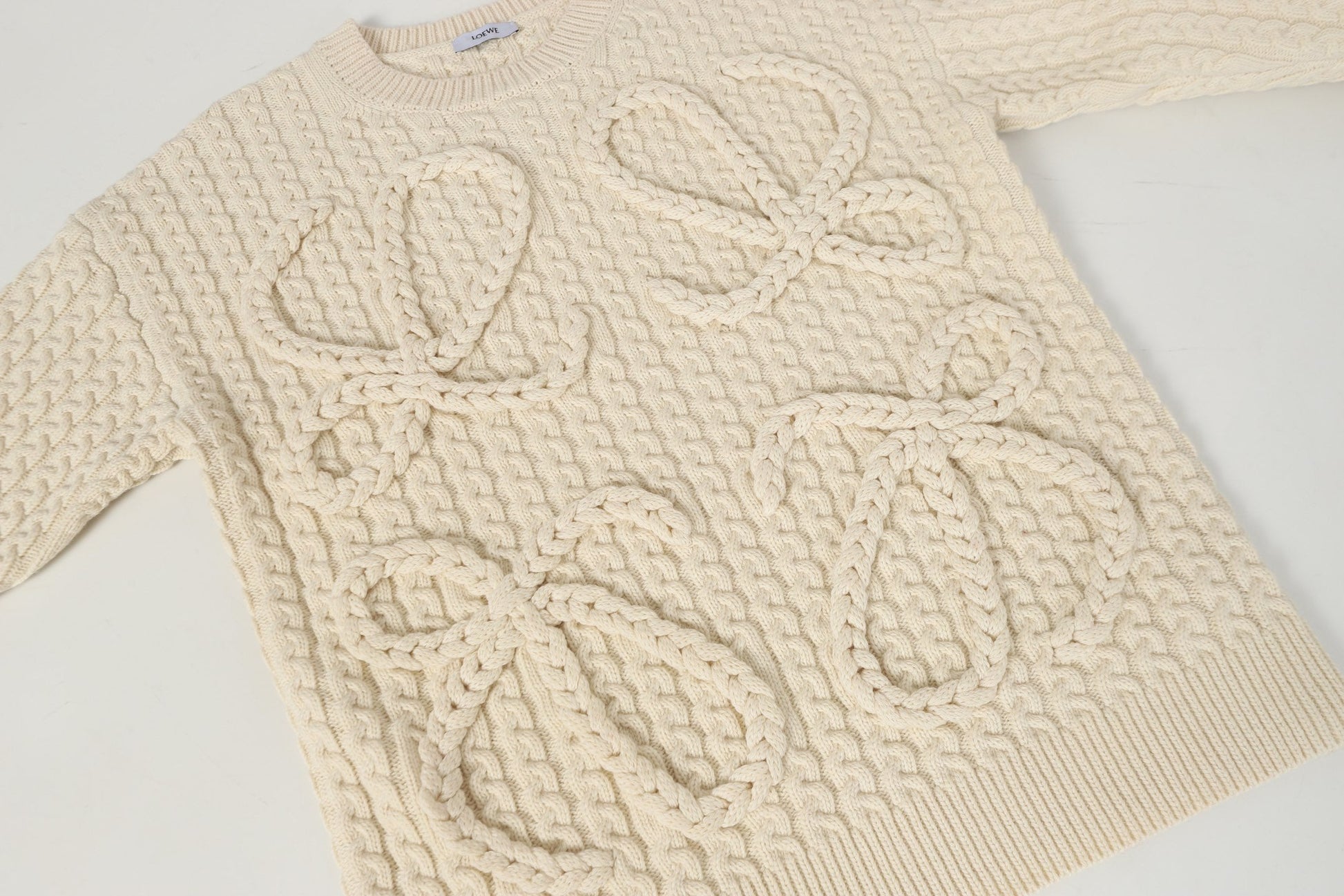 Loewe 2025 Anagram Cable-knit Sweater Cream Wool 315680