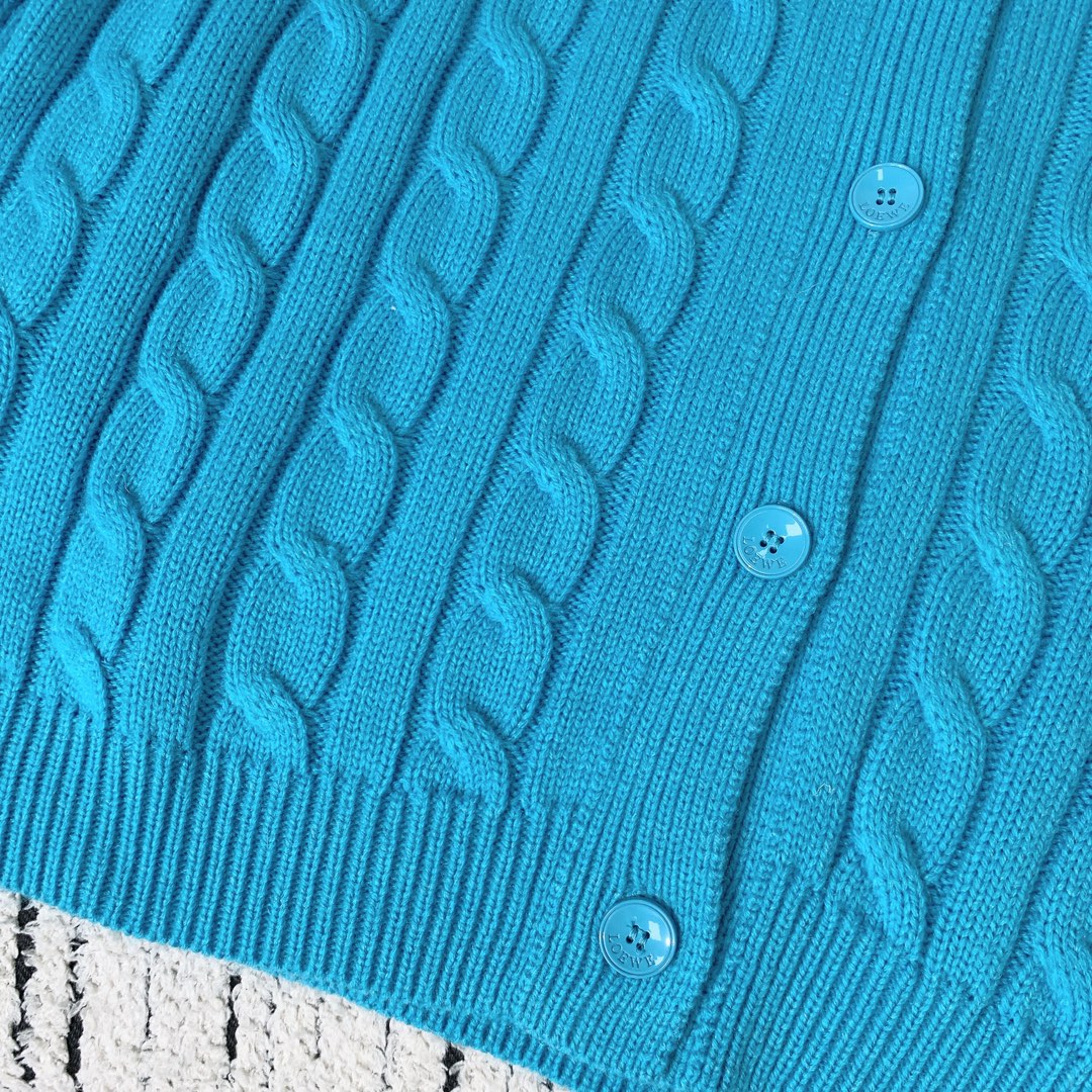 Loewe 2025 Knitted Embroidered Logo Button-Up Cardigan Blue Wool 289137