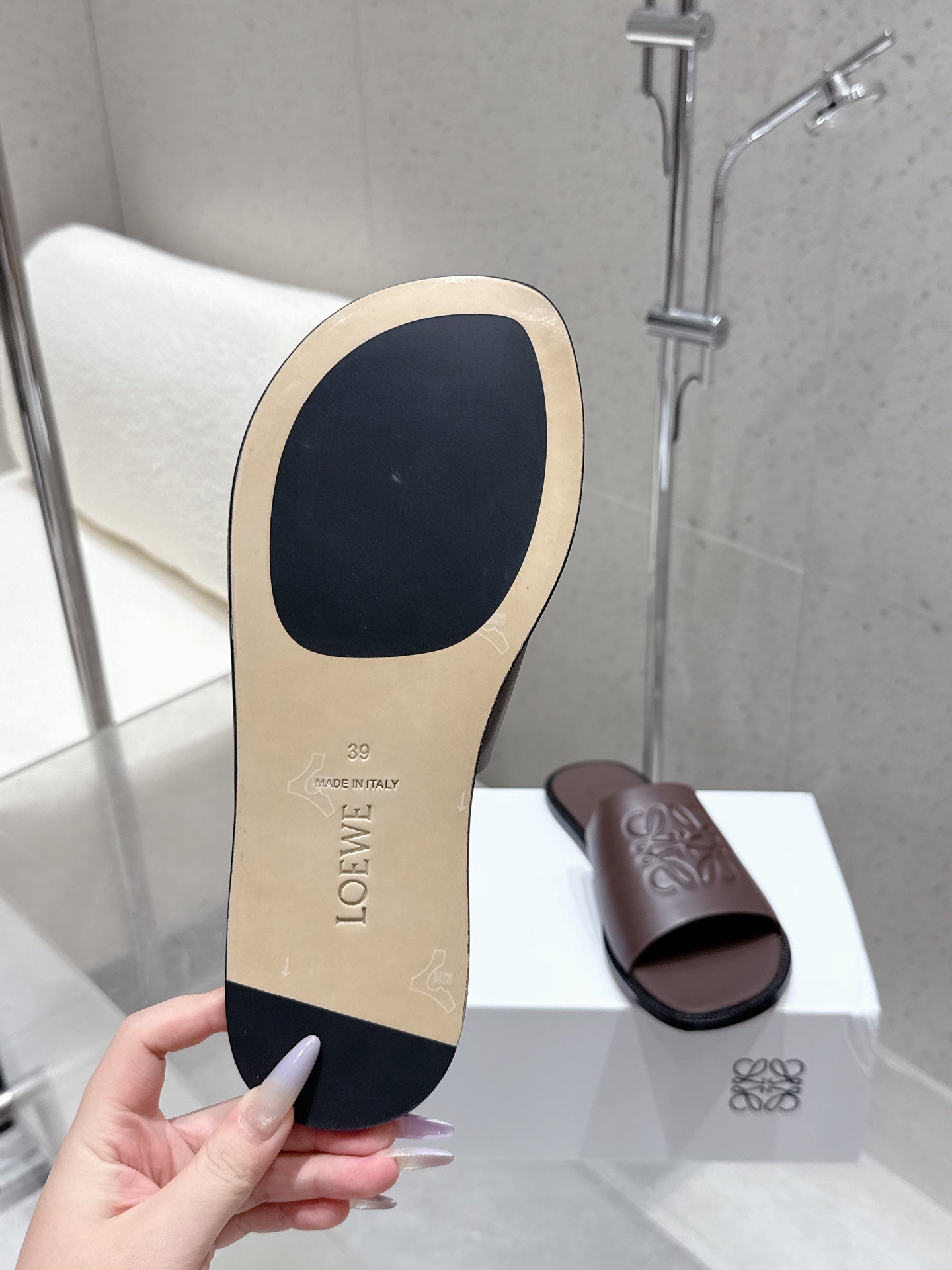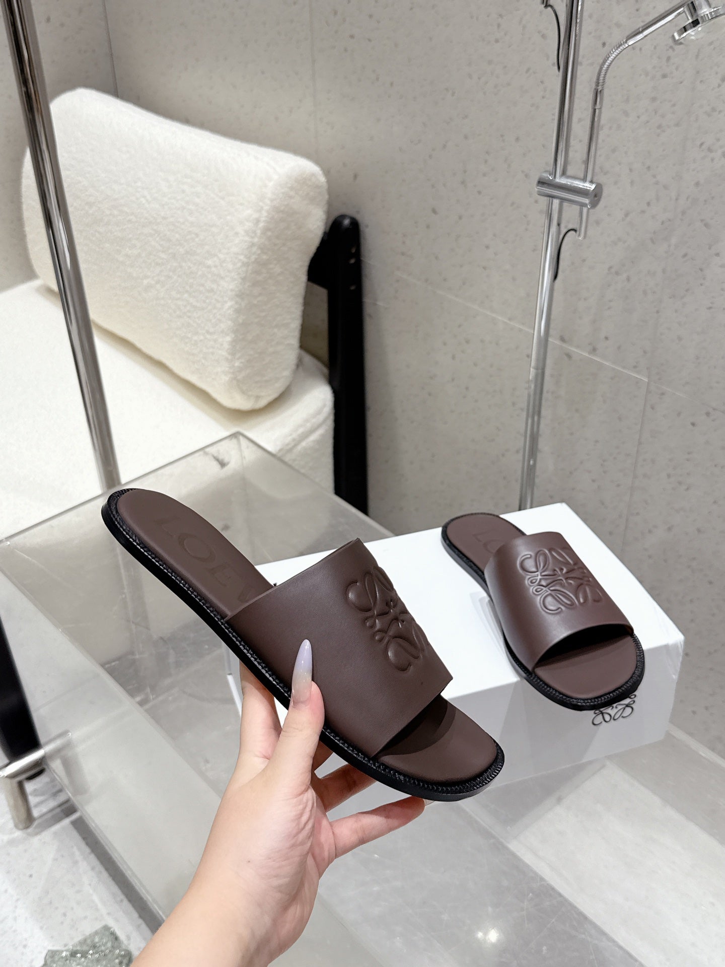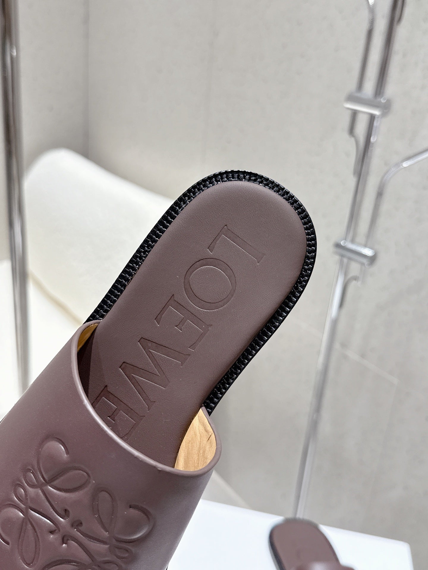 Loewe 25 flat slippers dark brown calfskin