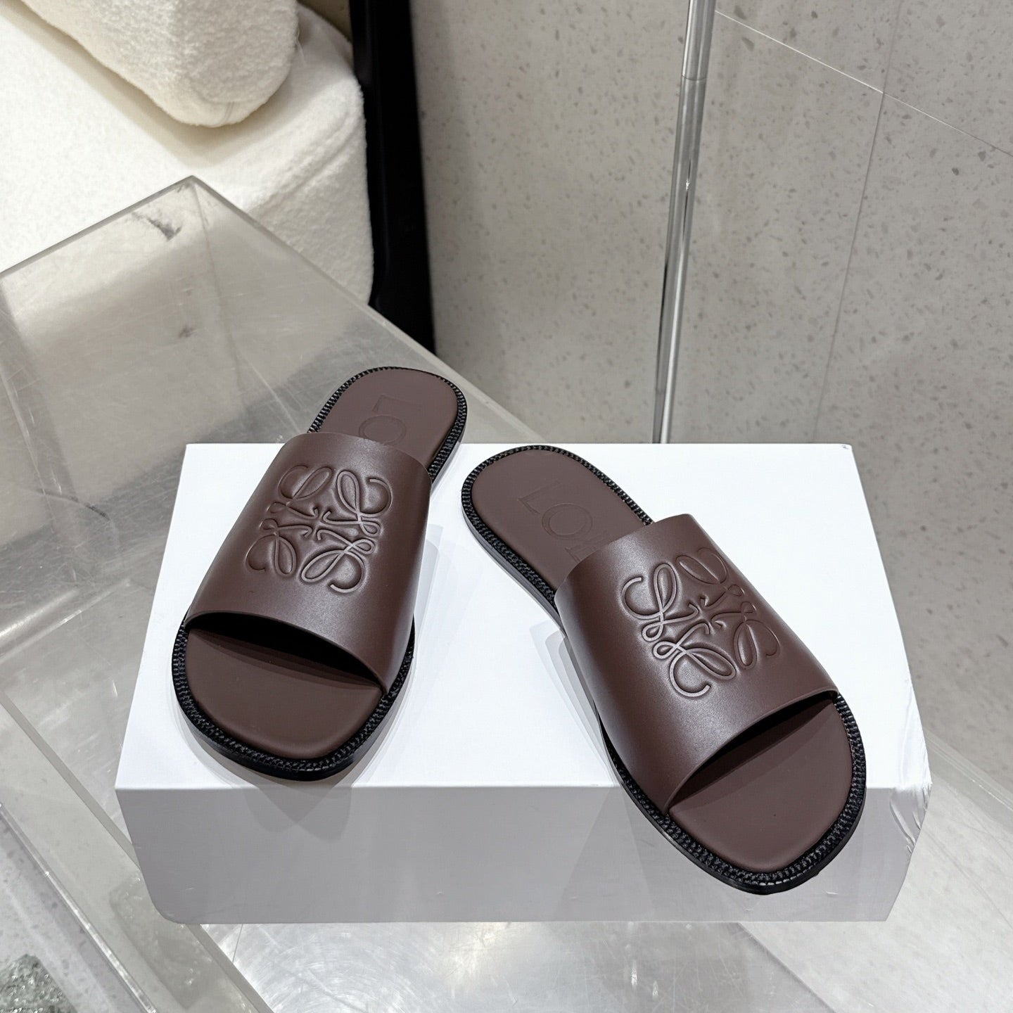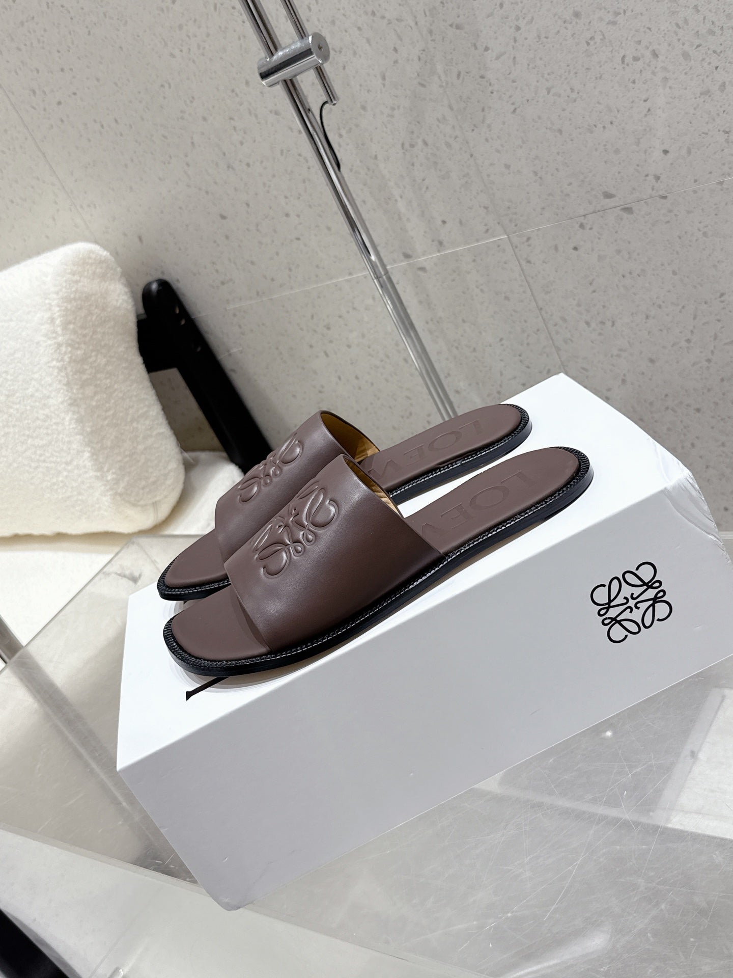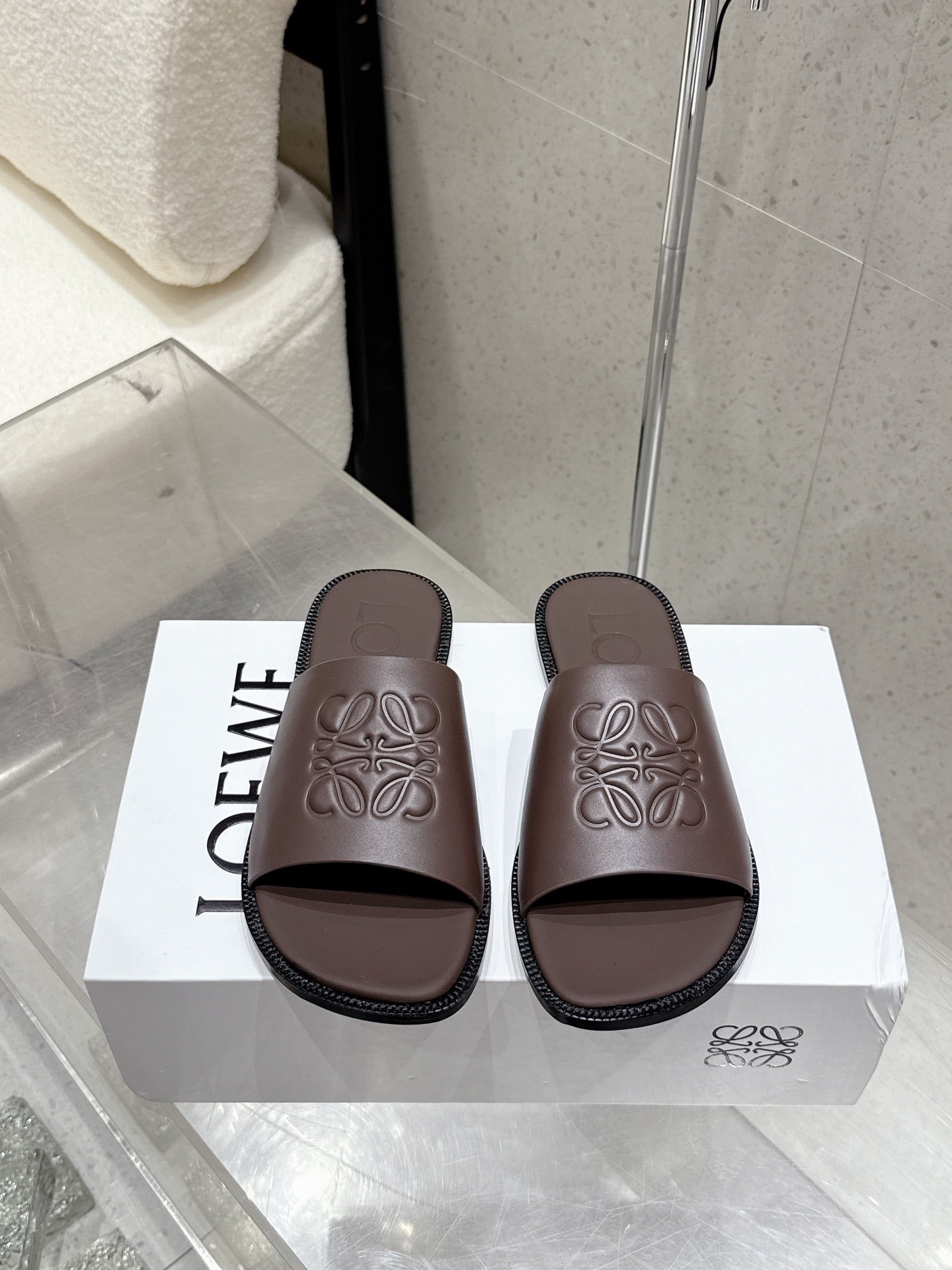 Loewe 25 flat slippers dark brown calfskin