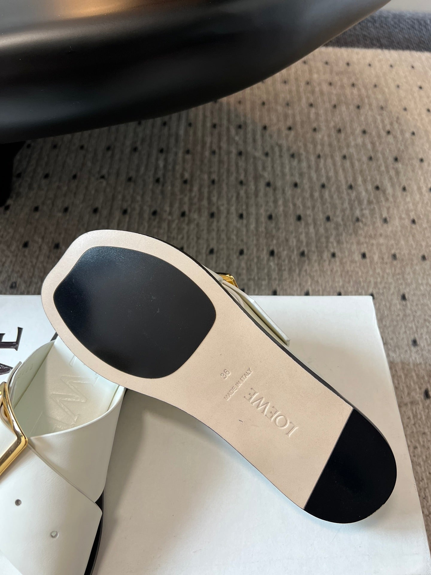 Loewe 25 Petal Belt Flat Sandals White Sheepskin 212777