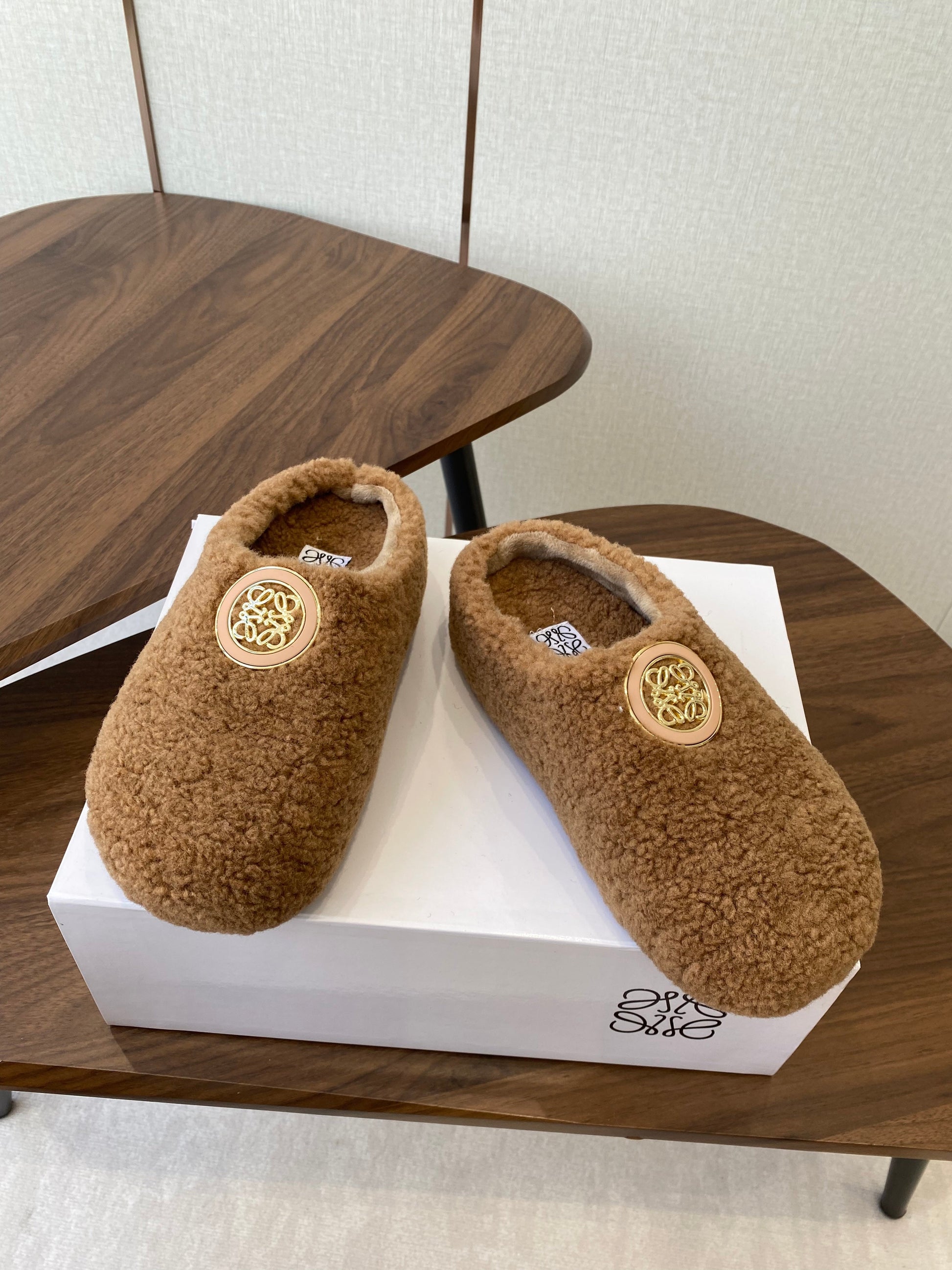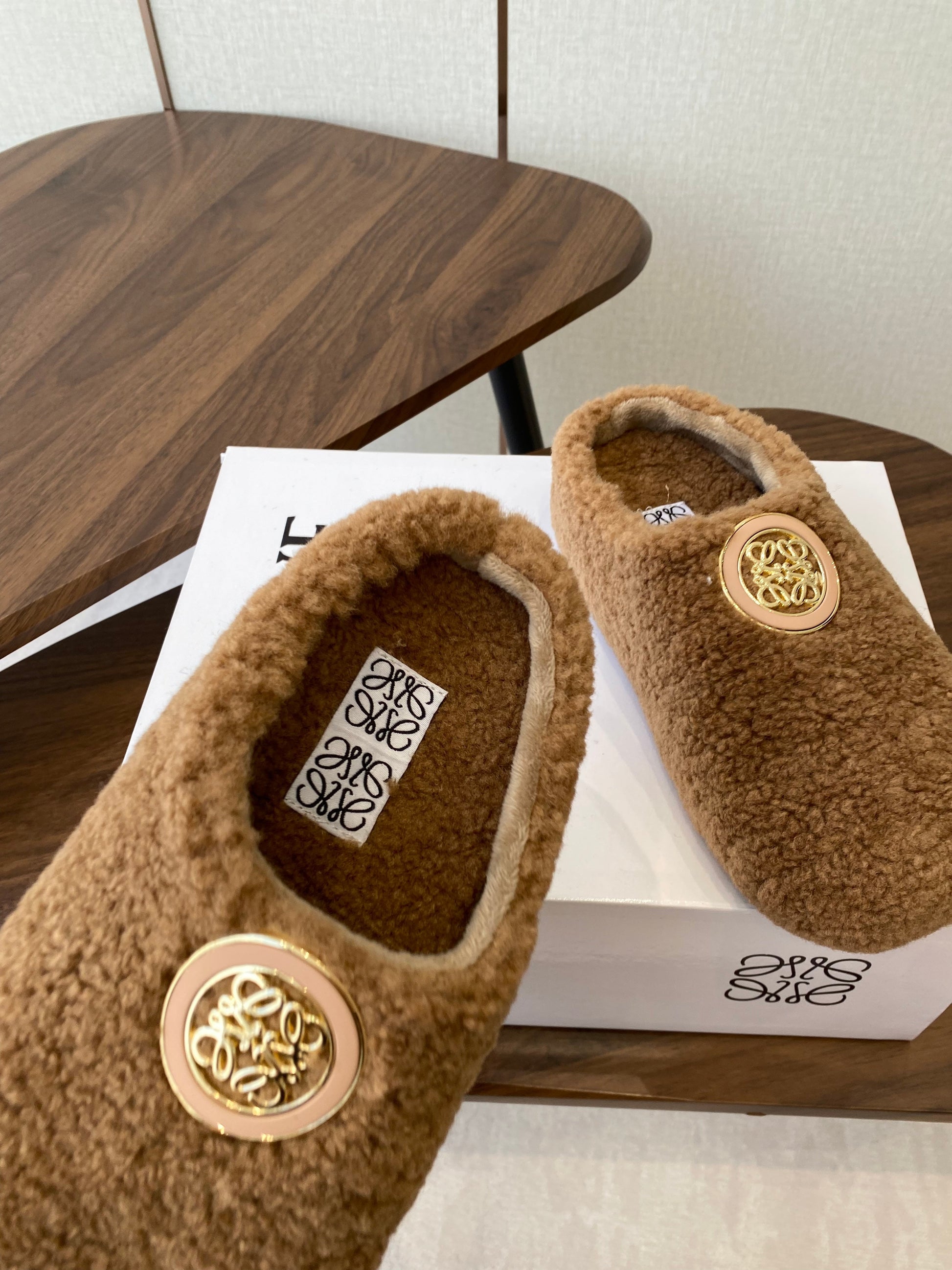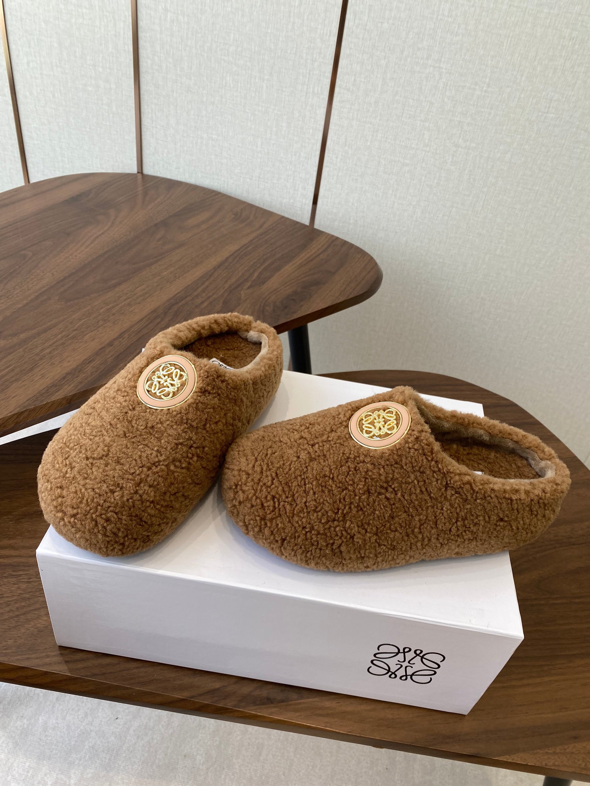 Loewe Birkenstock slippers brown wool 477792