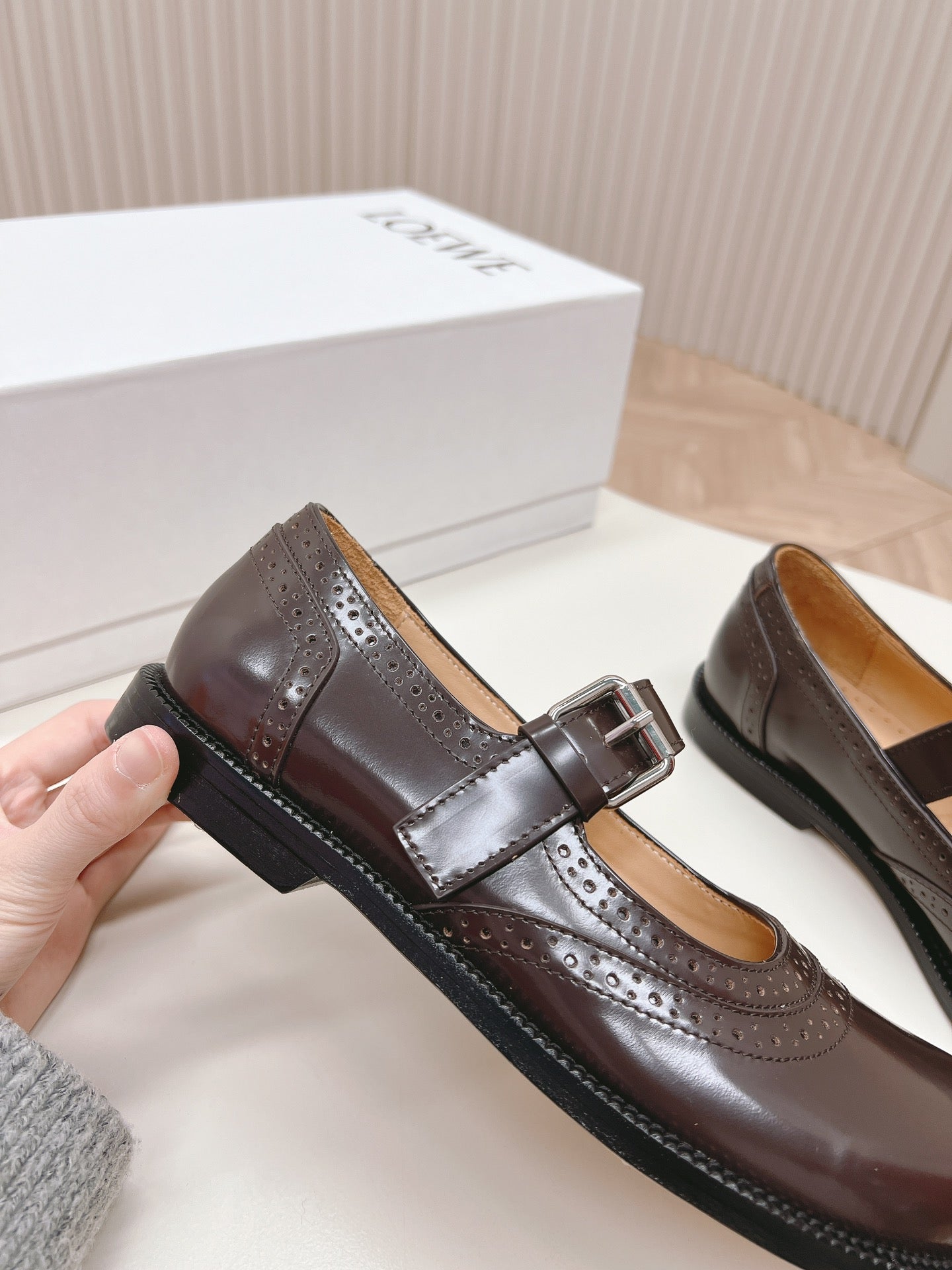 Loewe Campo Mary Jane Ballet Flat Mahogany Cowhide