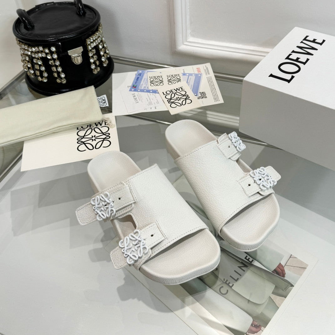 Loewe Ease Leather Slide White Sheepskin