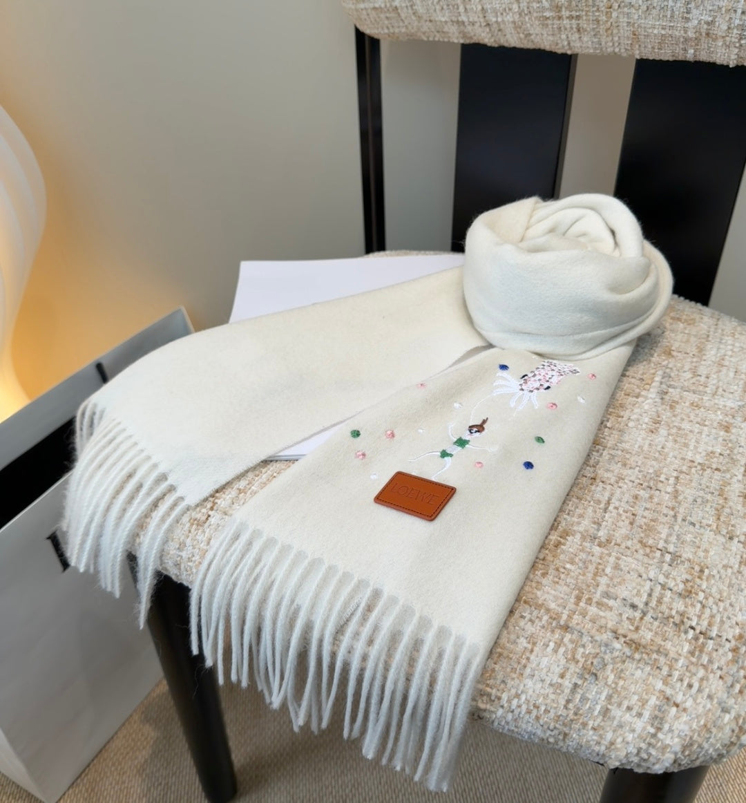 Loewe Scarf 180CM Ivory Wool-blend 909785