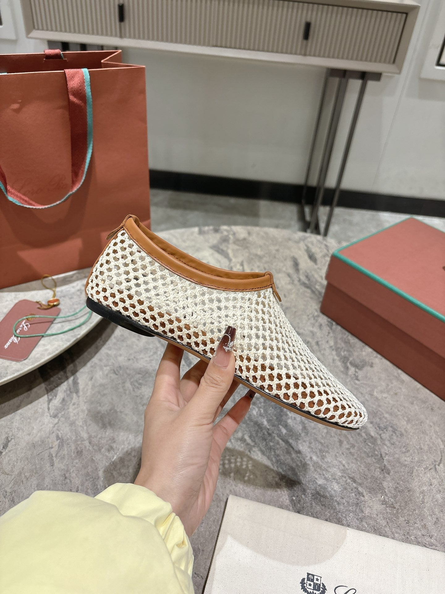 LP hollow knit ballet flats beige original leather 379024