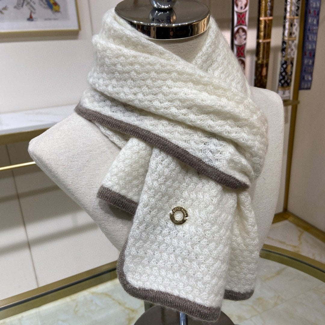 LP Scarf 125 CM In White With Earth Brown Border Cashmere 201757