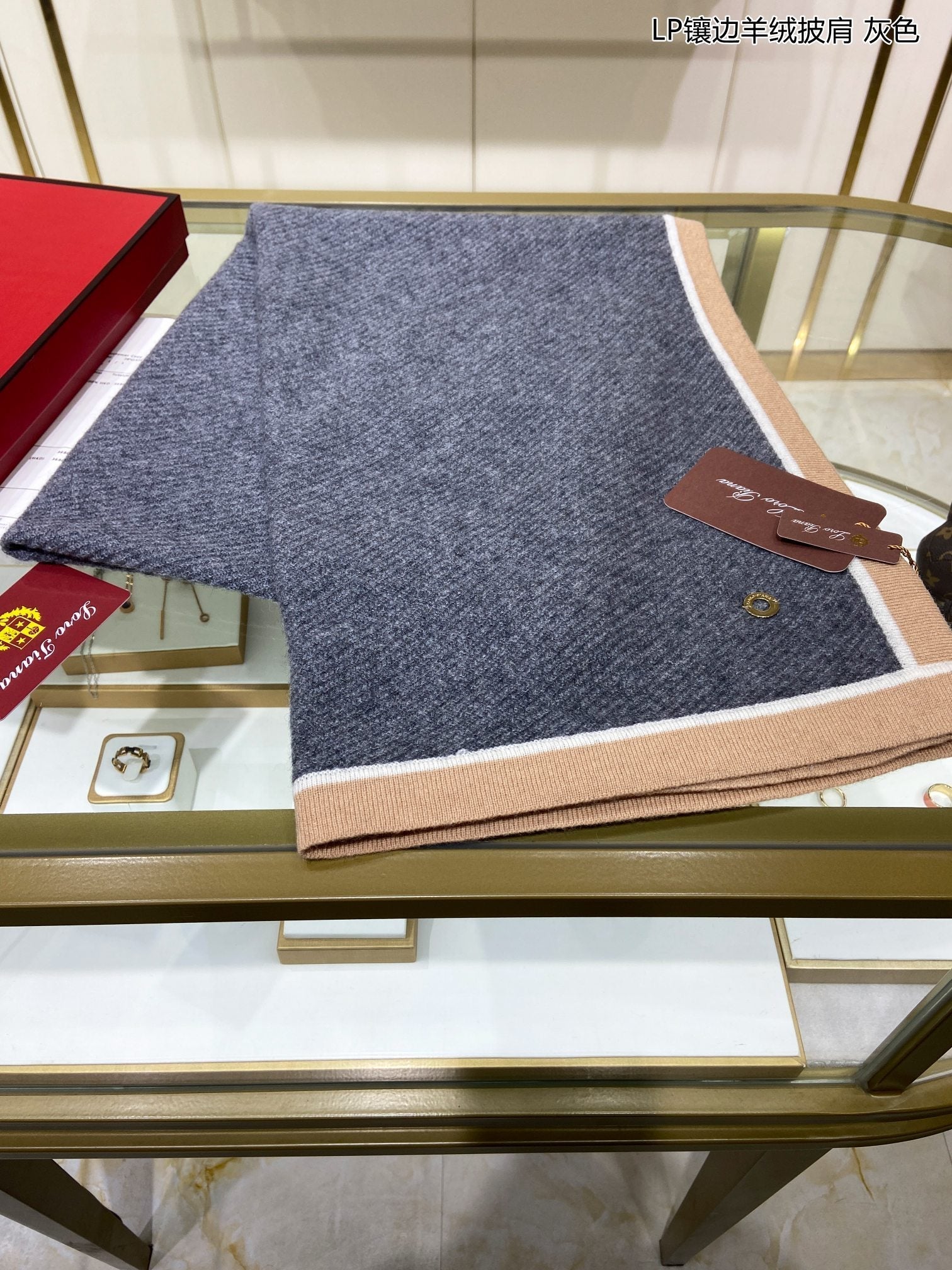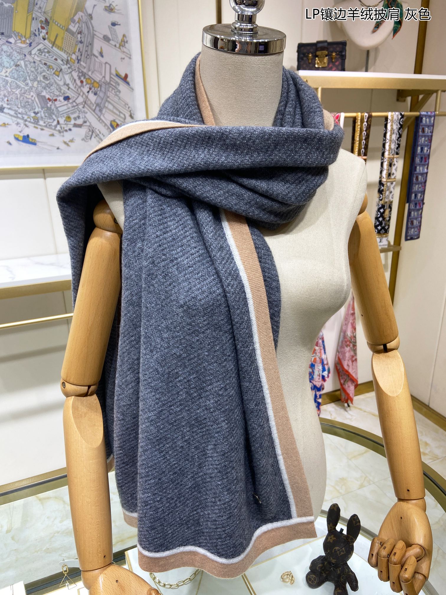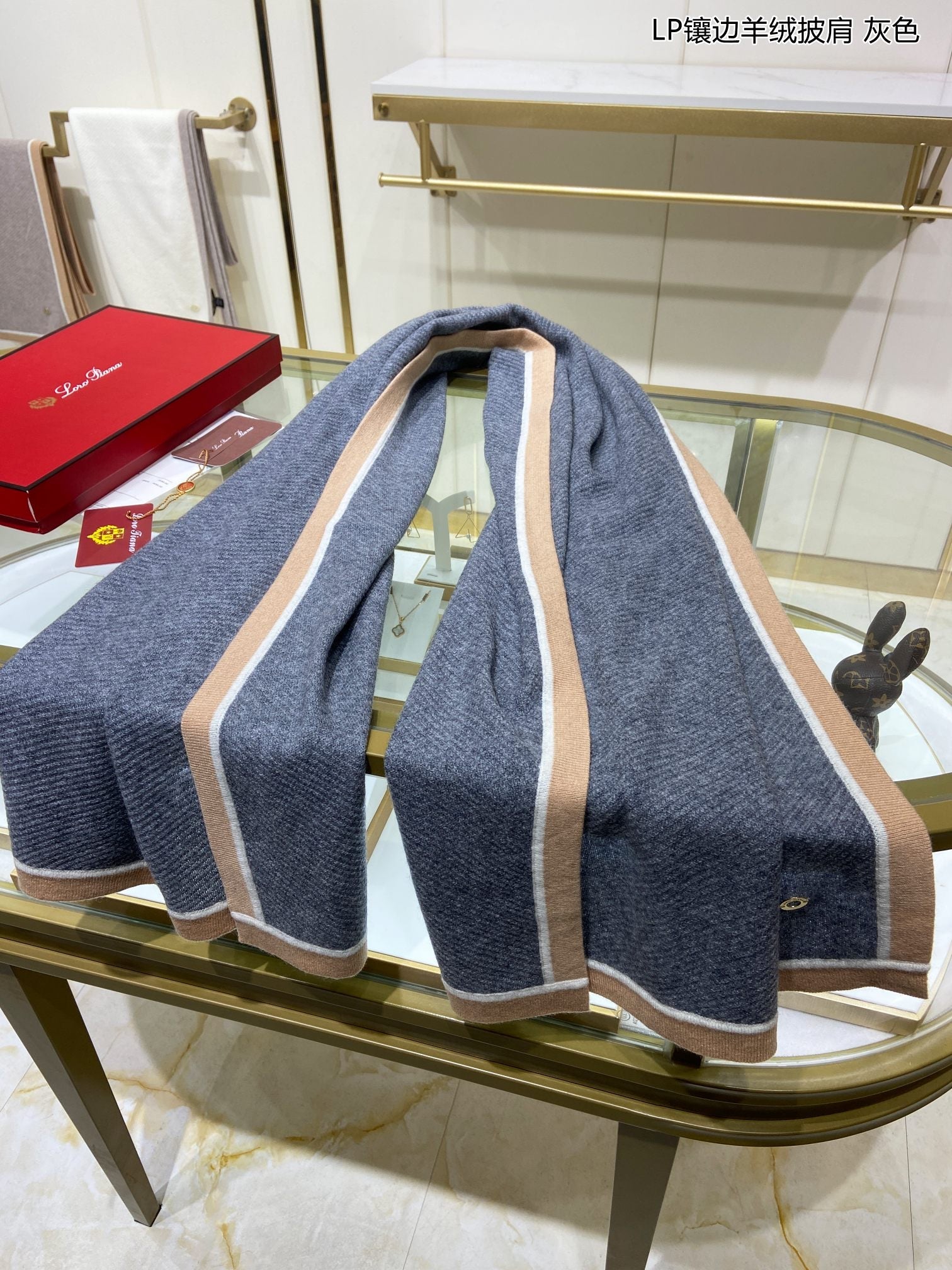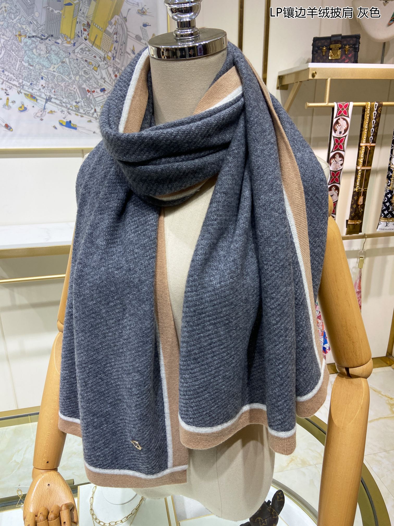 LP Scarf 170 CM In Dark Grey Blue Mix Brown Consinee Cashmere 205598
