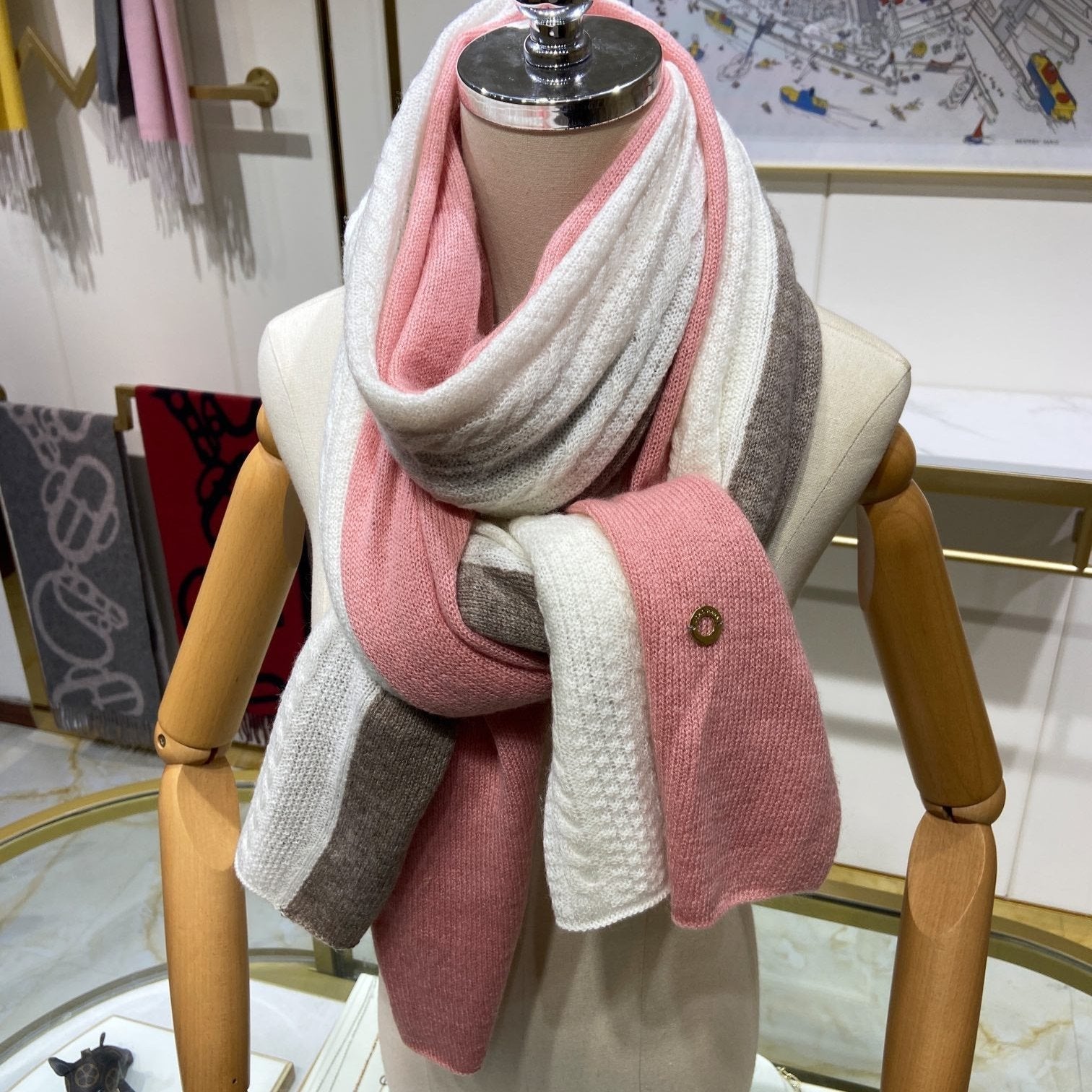 LP Scarf 190 CM In Pink Mix White Earth Brown Cashmere 649678