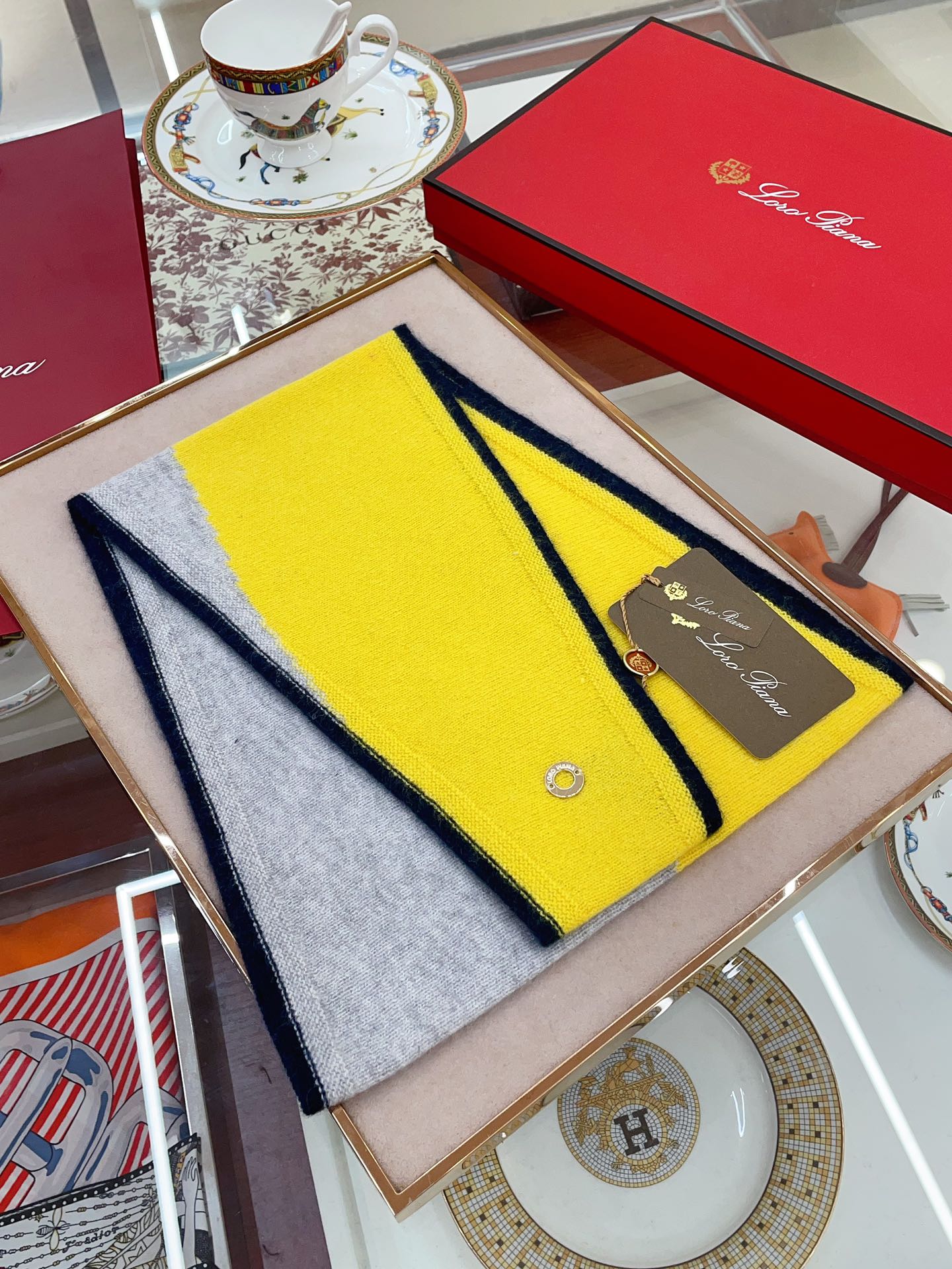 LP Yodo Scarf 150 CM In Grey Mix Yellow Cashmere 130489