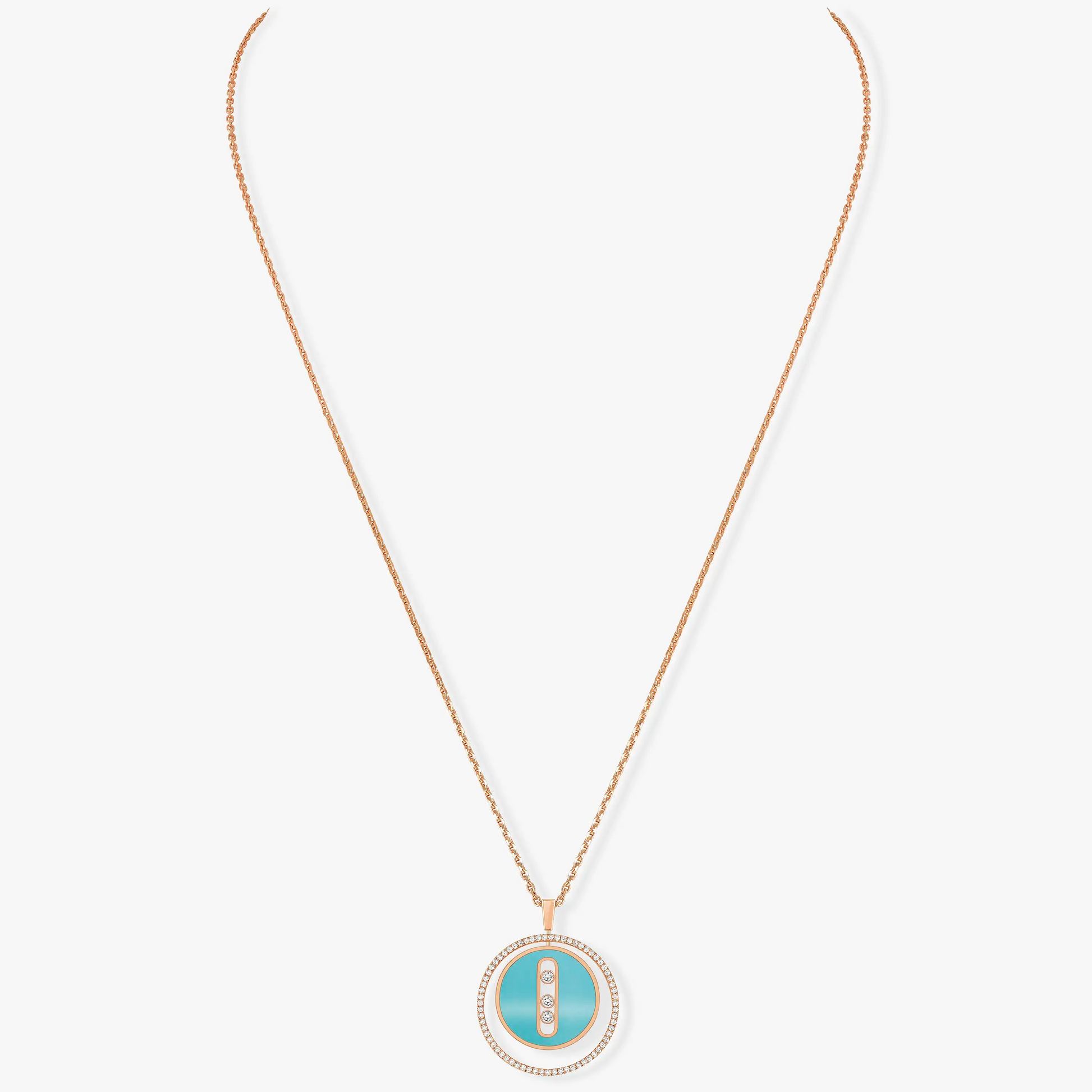 LUCKY MOVE 3 DIAMONDS TURQUOISE PINK GOLD DIAMOND NECKLACE